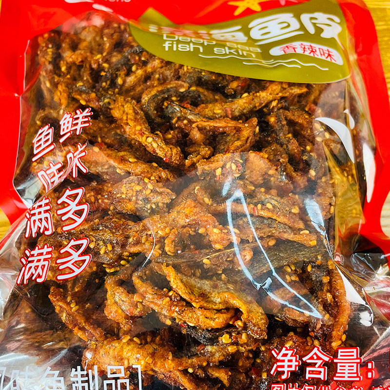 九妹下厨香辣深海鱼皮鳕鱼片零食甜辣即食500g袋装香酥下饭小吃