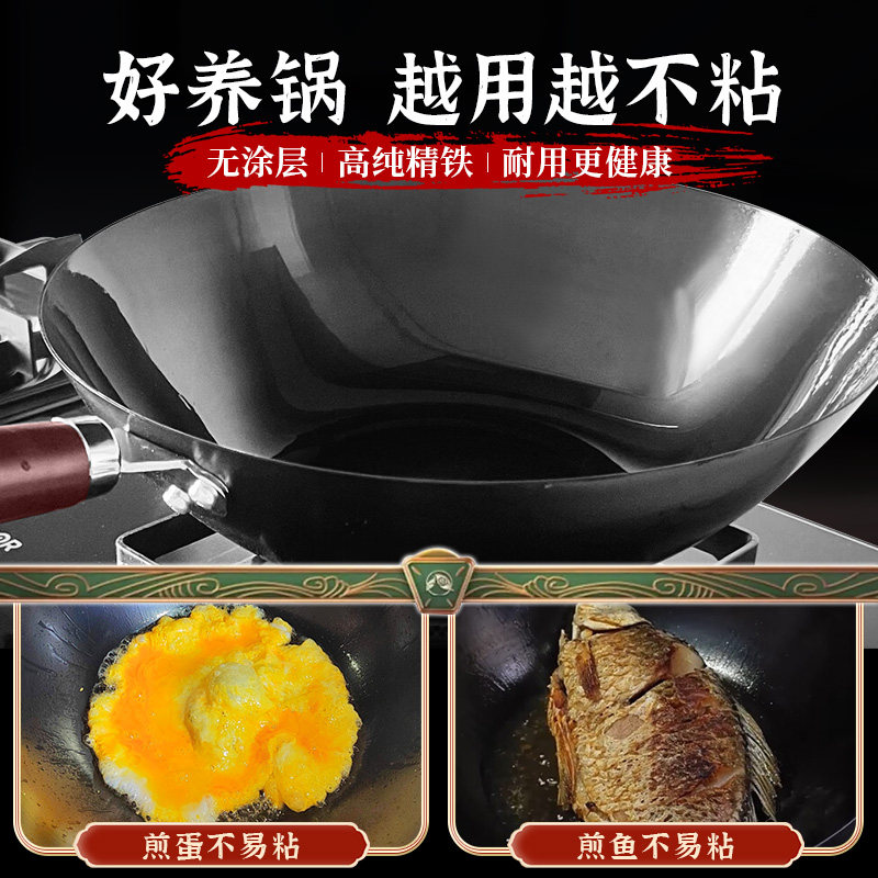 苏泊尔炒锅铁锅家用炒菜锅老式无涂层燃气灶电磁炉专用精铁熟铁锅