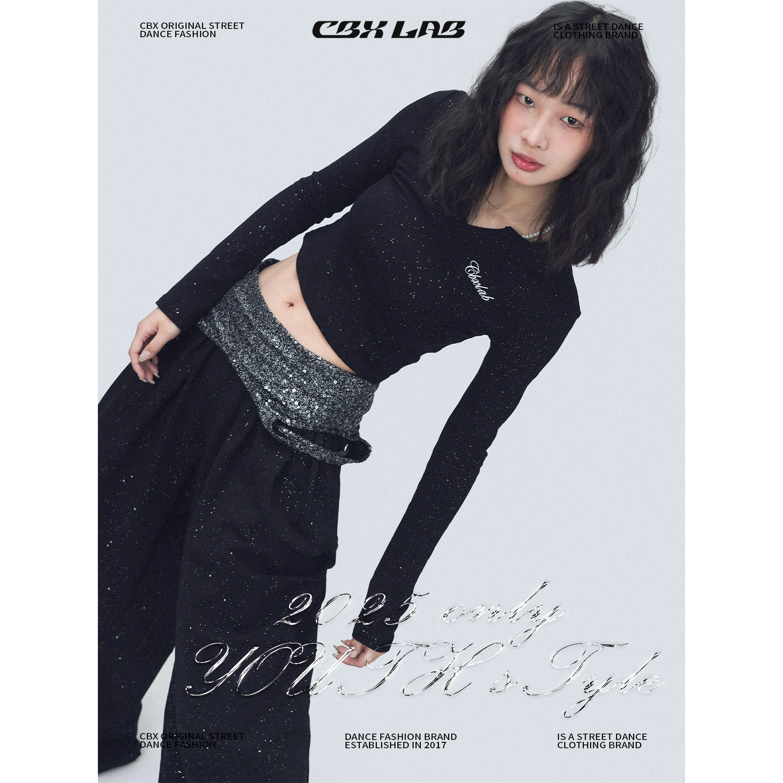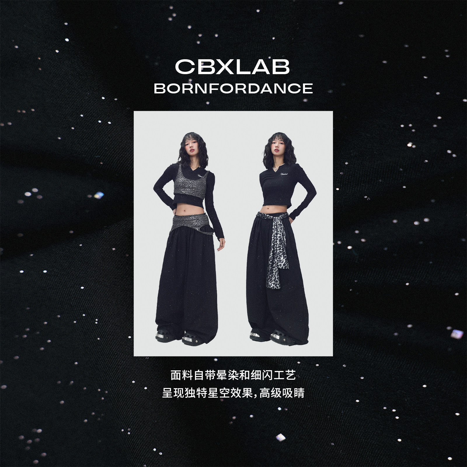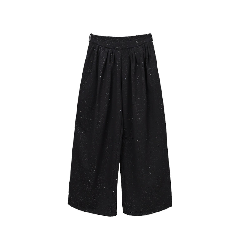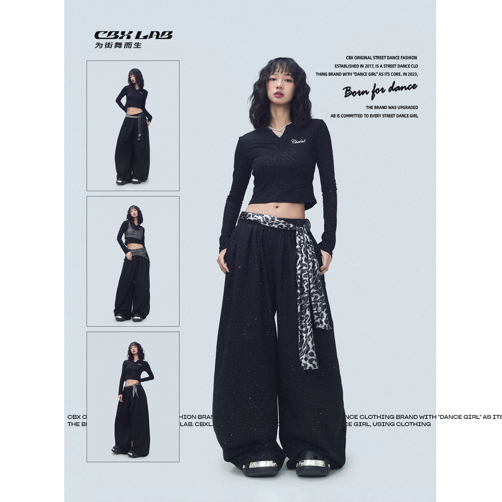 CBXLAB街舞潮牌黑色简约百褶闪片嘻哈阔腿长裤爵士辣妹跳舞休闲裤