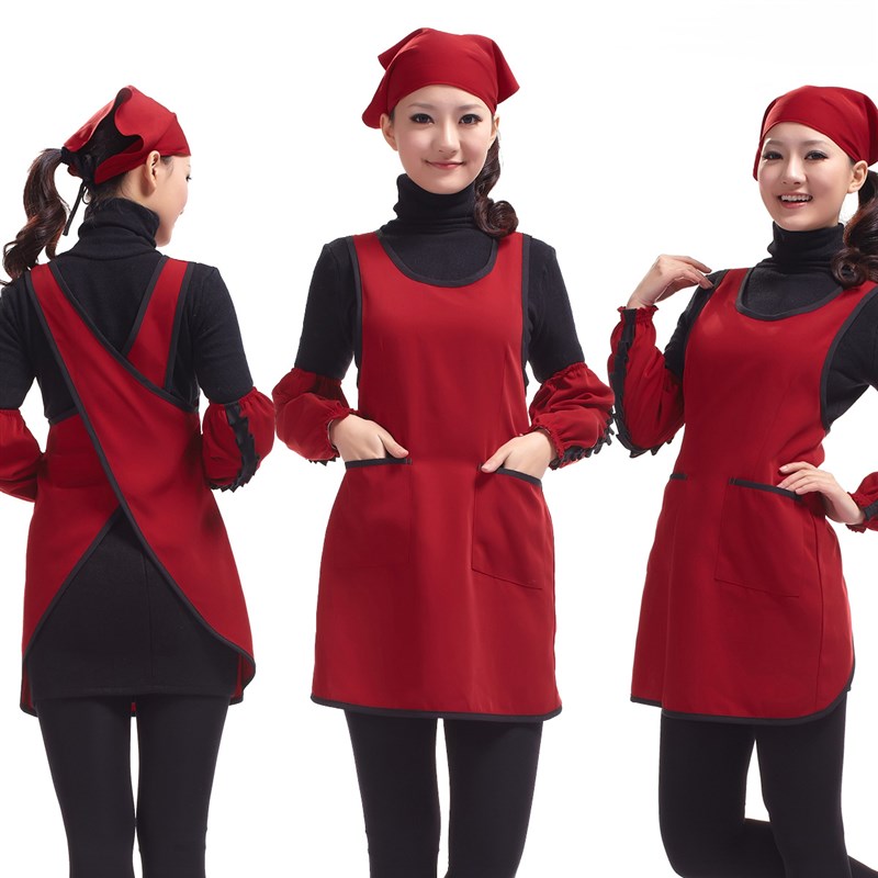 酒店餐饮服务员母婴美容院火锅工作服厨房定做围裙印绣logo定制