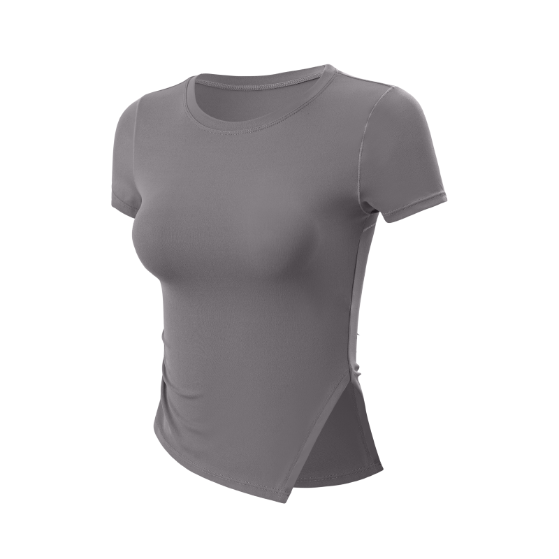 运动短袖女夏季新款侧开叉修身显瘦速干普拉提训练健身瑜伽服上衣