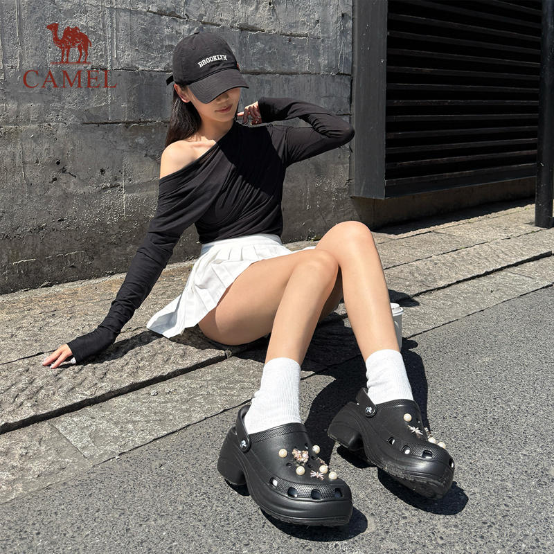 骆驼女鞋2025春夏新款洞洞鞋女青春百搭时尚沙滩鞋透气休闲凉鞋