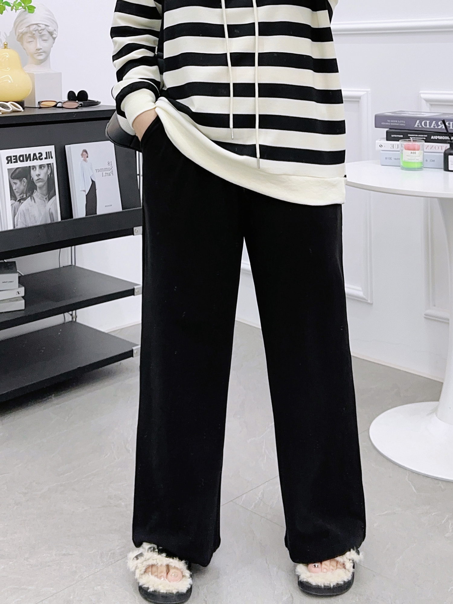 宛宛大码垂感糯米裤秋冬新款直筒长裤抽绳休闲裤胖mm宽松阔腿裤女