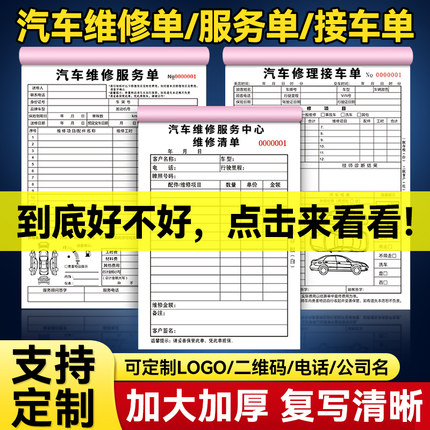 汽车维修单两三联修理厂接车单汽修厂派工单施工服务单定做4S店服务单报价结算清单定制汽车保养维修结算单据