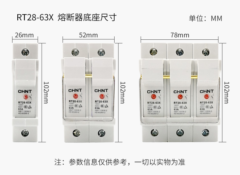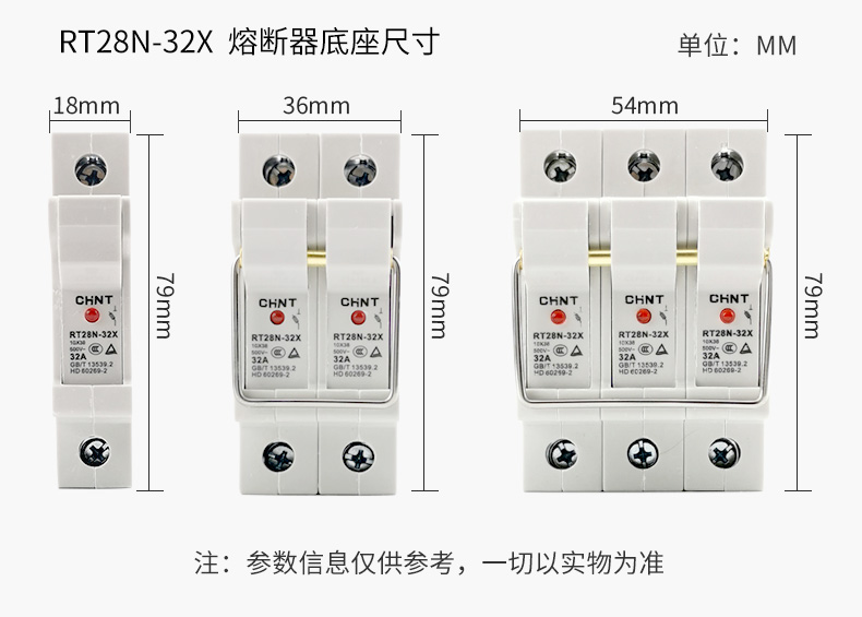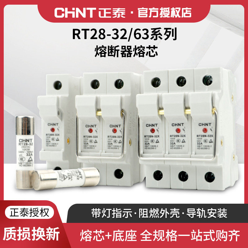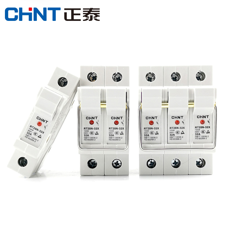 正泰熔断器底座1P 2P 3P导轨式保险丝熔座RT28N-32X 63X 带灯底座