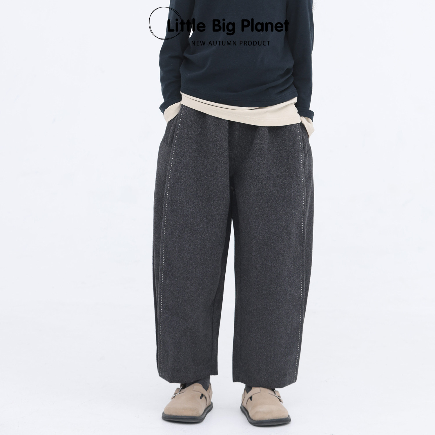 松弛感毛呢加厚哈伦裤小小大星球
