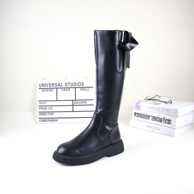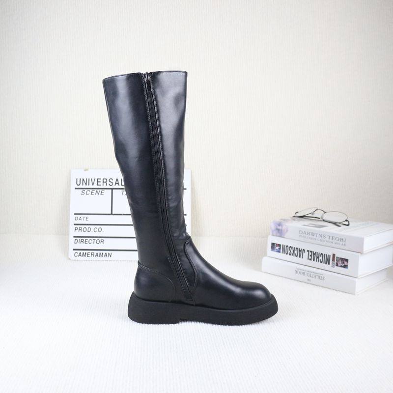 粗跟厚底圆头加绒侧拉链女骑士靴