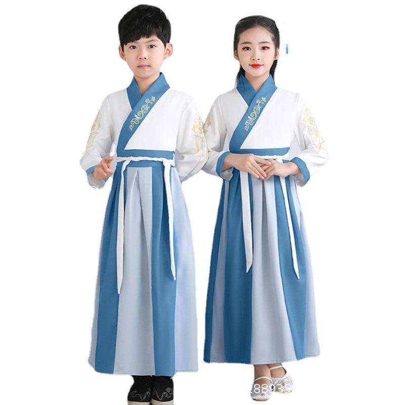 儿童古装男女童汉服中国风书童演出服装小学生三字经弟子规表演服