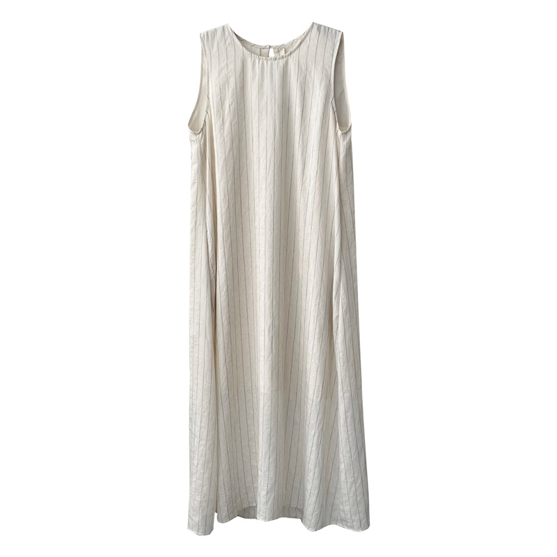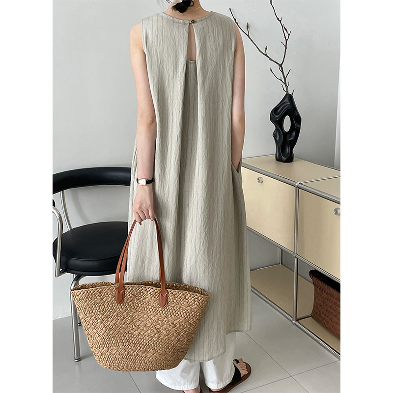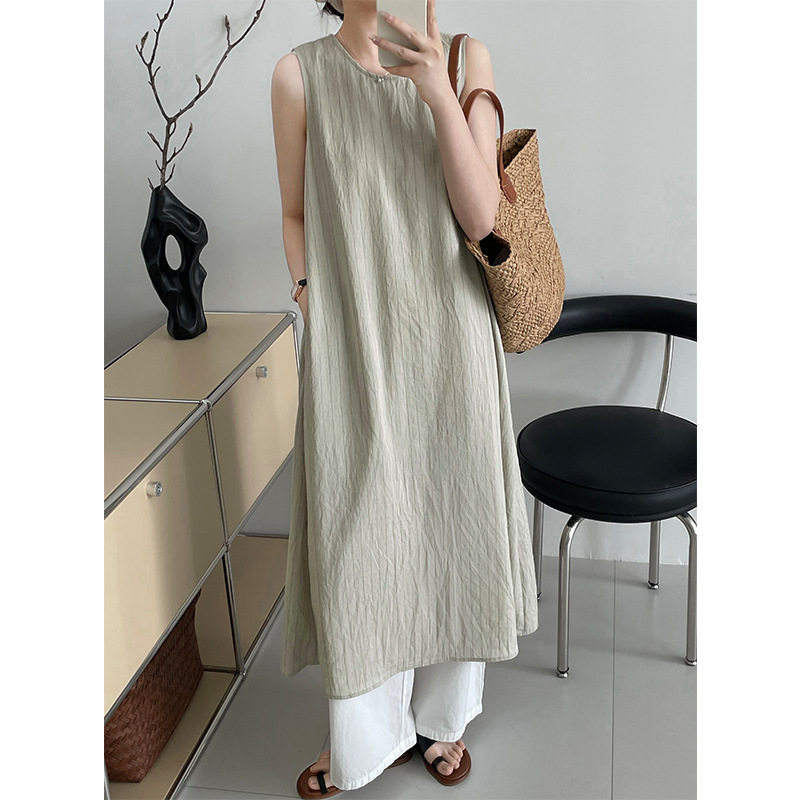 可乐舒适天花板!高级肌理感条纹连衣裙女宽松无袖背心长裙2537