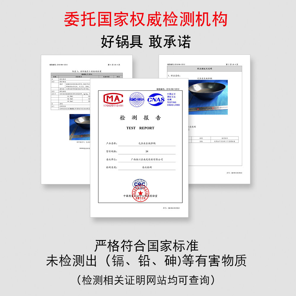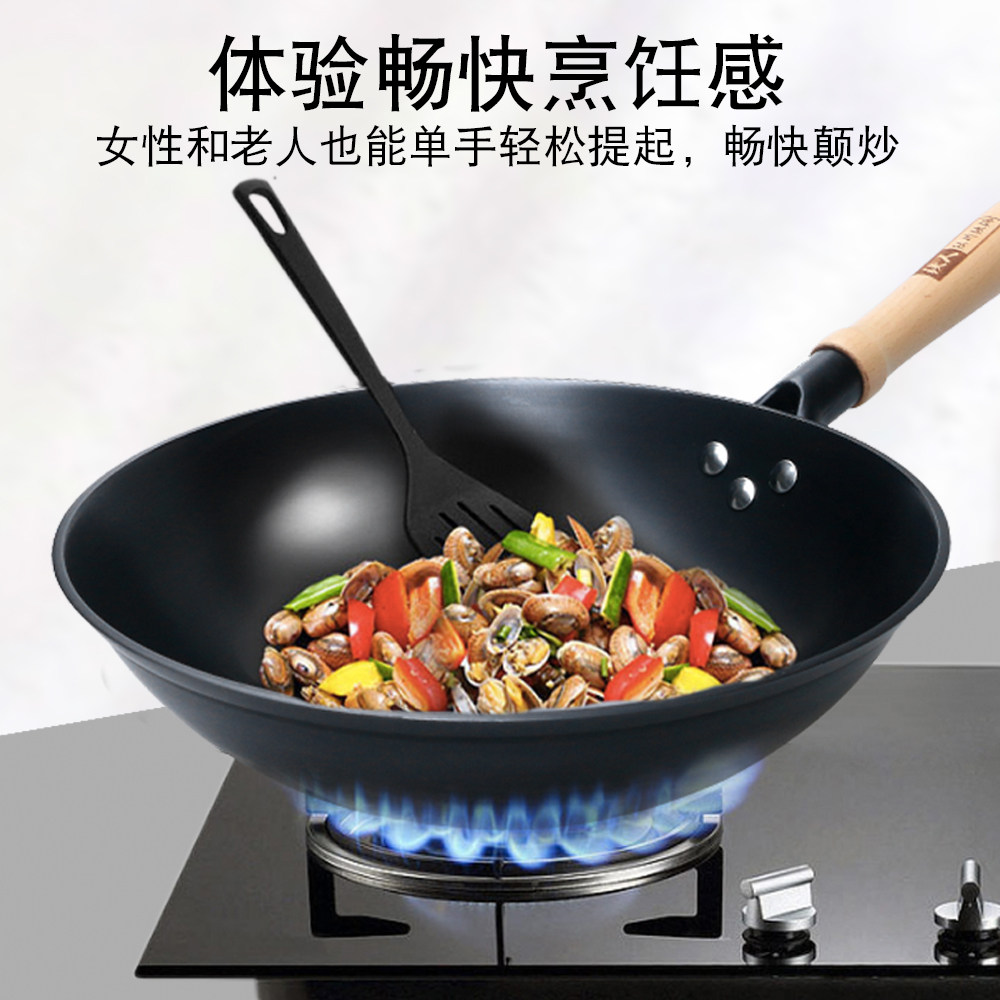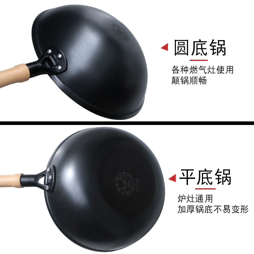 铁人铁锅陆川炒锅家用无涂层生铸铁锅炒菜锅燃气电磁炉适用不粘锅