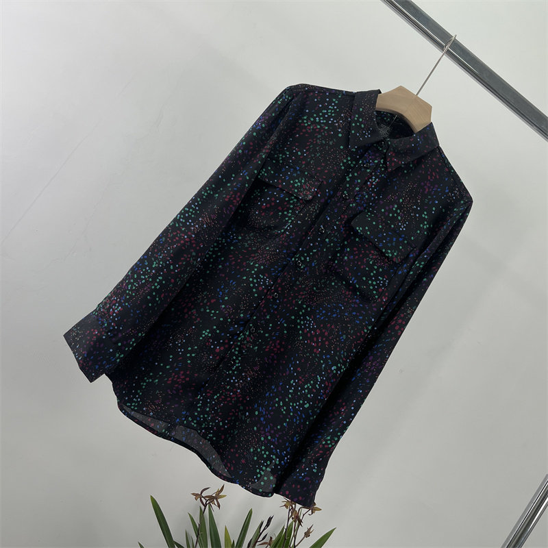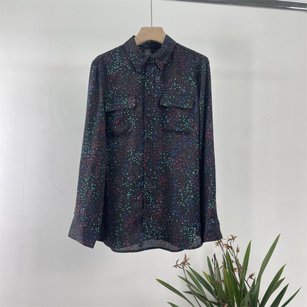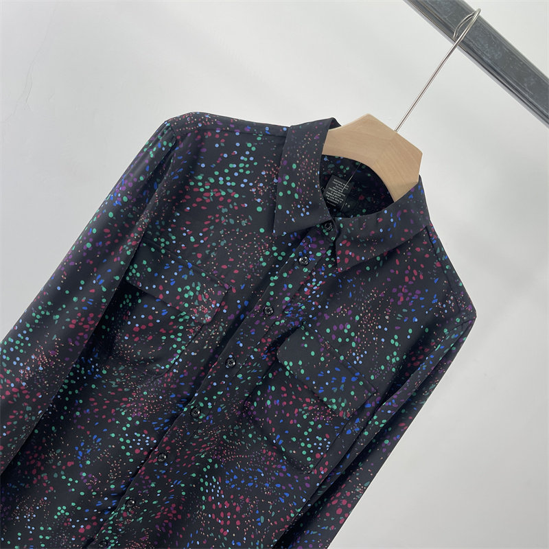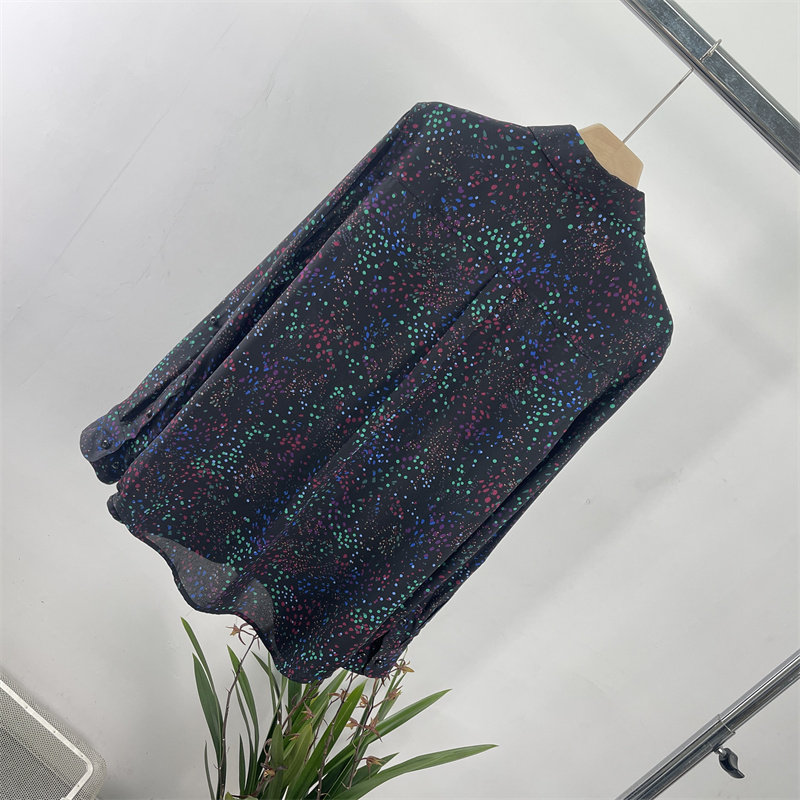 外贸欧美 春秋季彩色波点雪纺大码长袖衬衫上衣