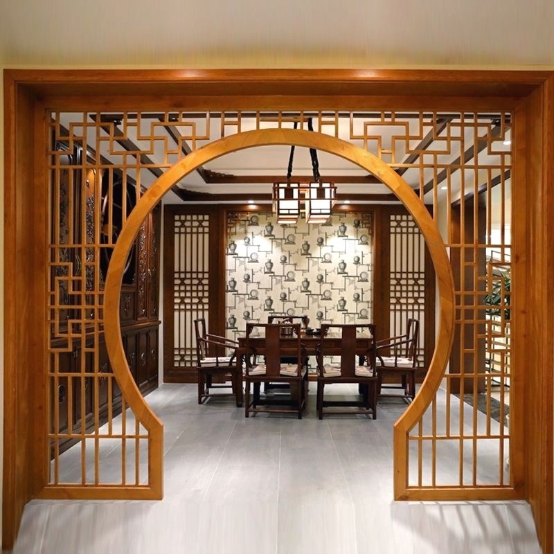 东阳木雕月洞门中式隔断月亮门松木实木花格圆拱门博古架仿古屏风