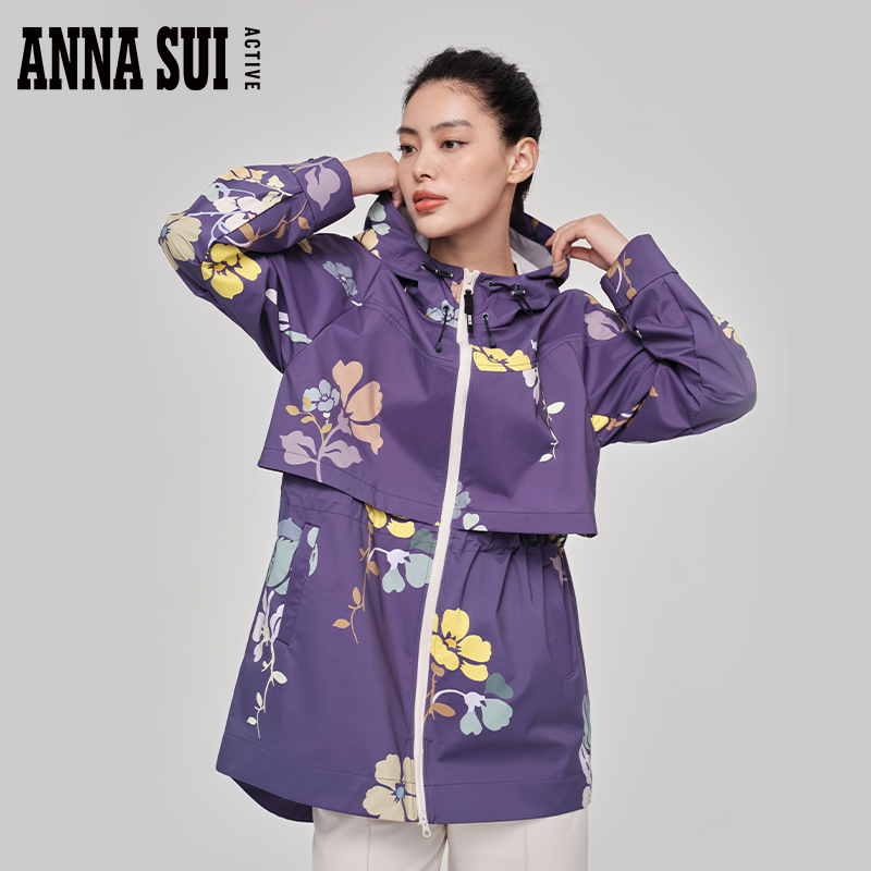 ANNA SUI安娜苏运动 全能防护 中长款外套印花时尚冲锋衣户外女