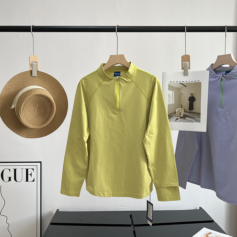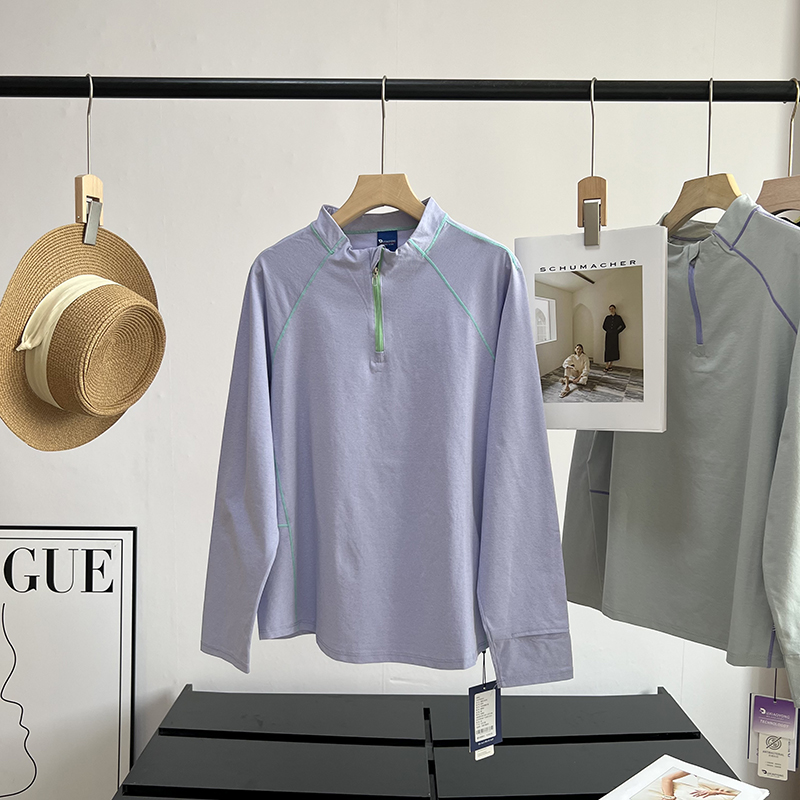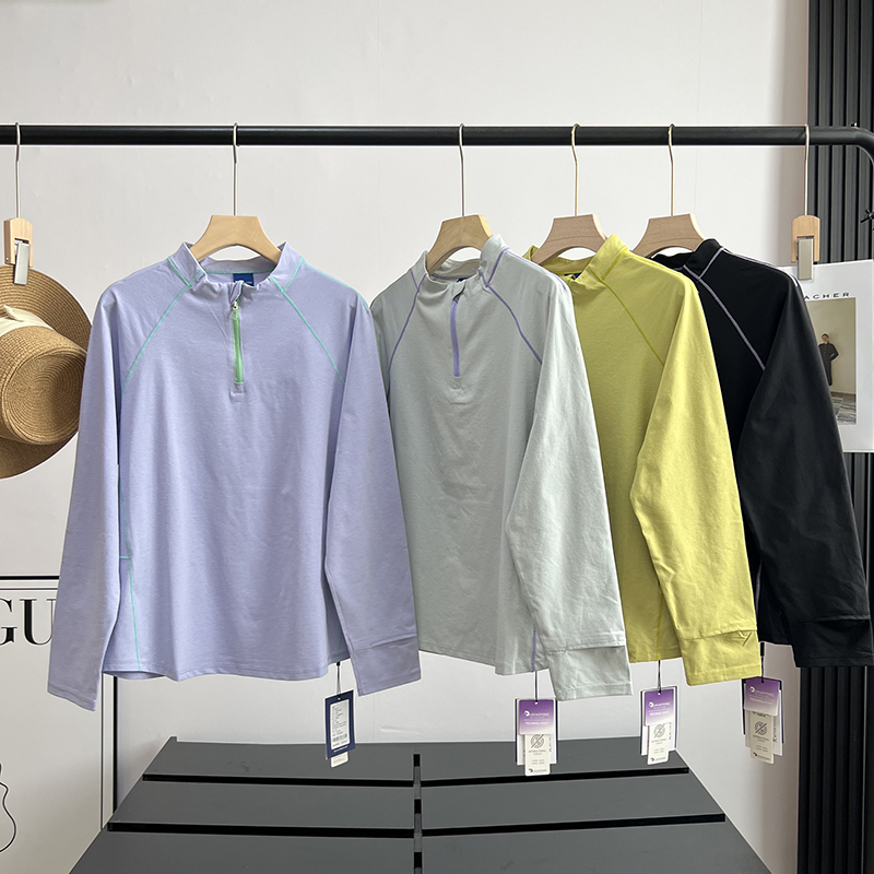 大厂订单!户外山系立领半拉链吸湿速干弹力训练衣运动长袖T恤女