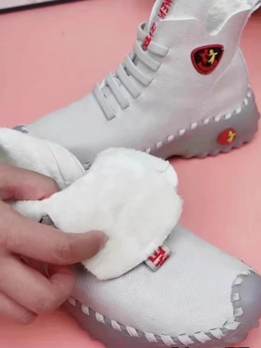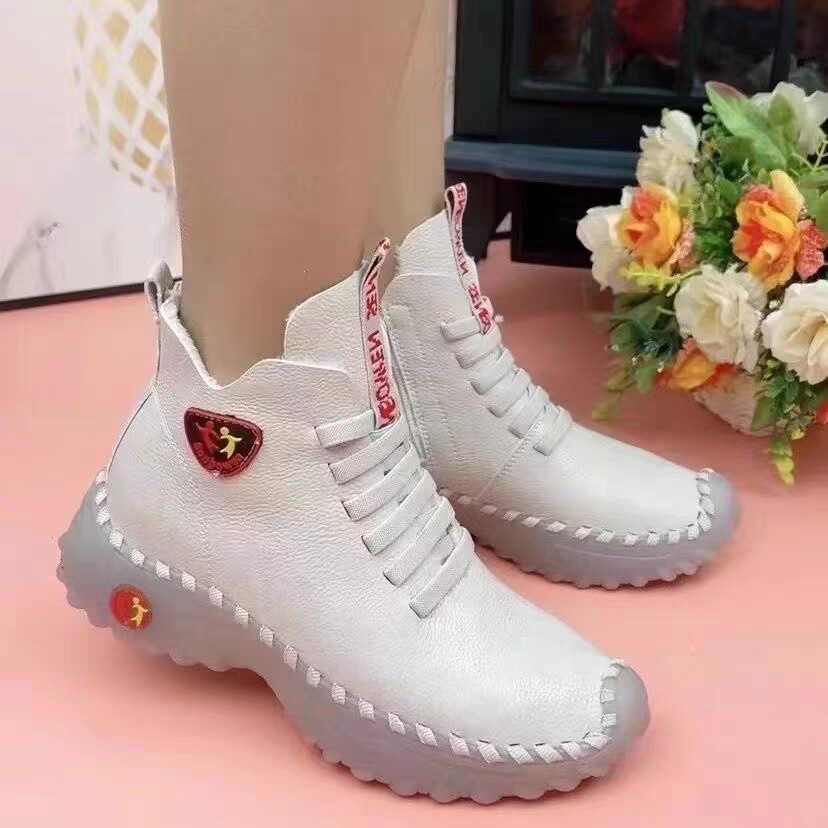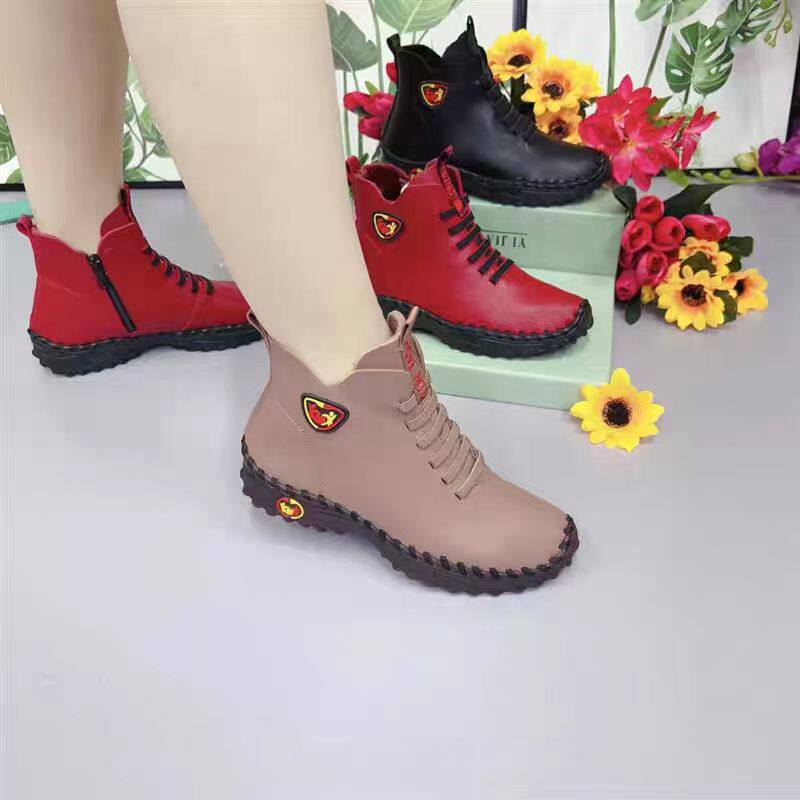 新款纯手工缝线冬季妈妈棉鞋真皮防滑短靴加绒保暖女士马丁鞋舒服