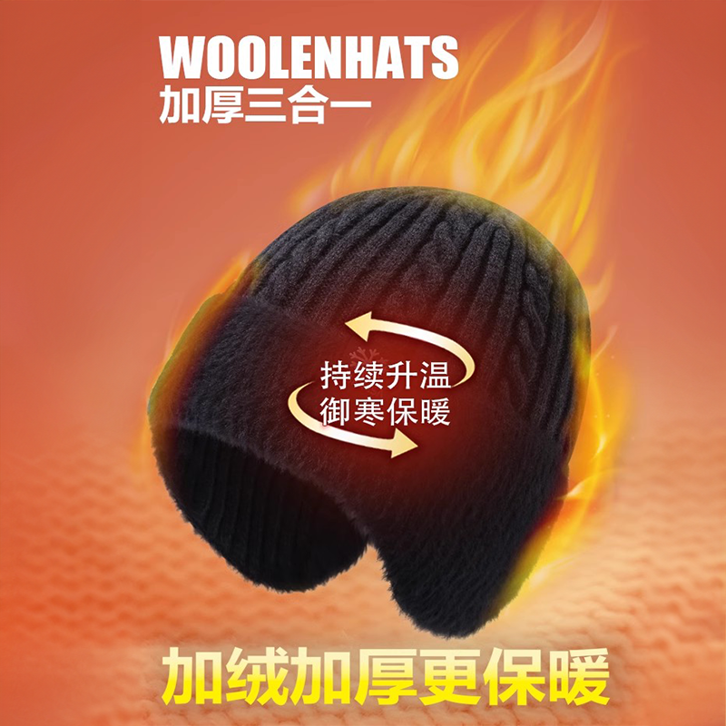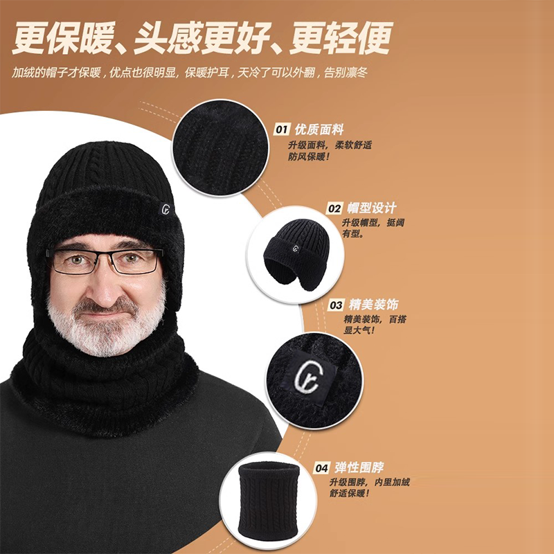 中老年人帽子冬天男士保暖针织帽加绒加厚爸爸爷爷毛线帽护耳棉帽