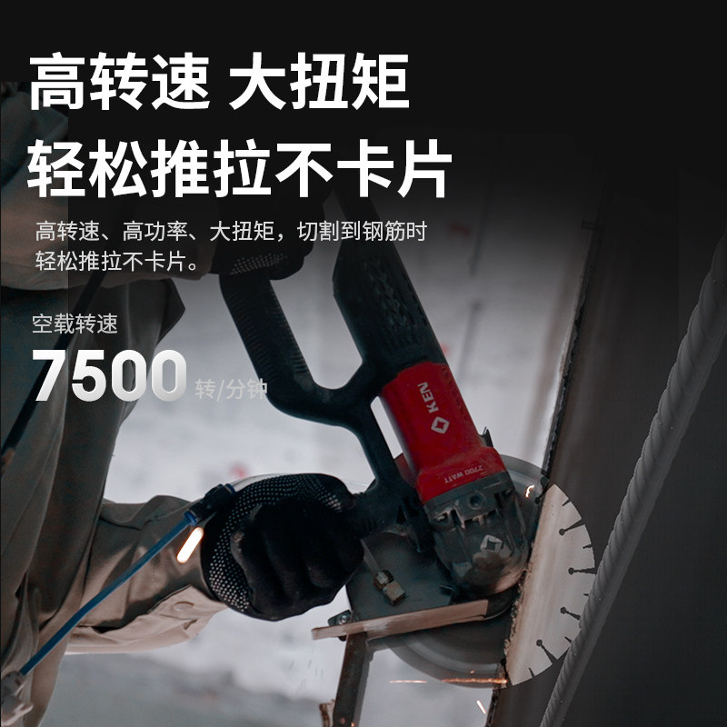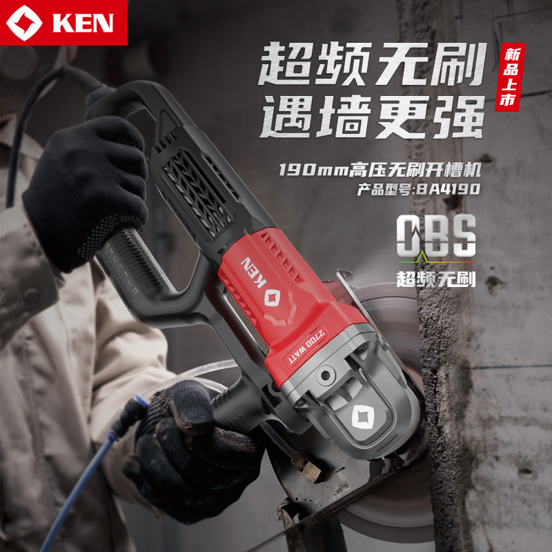 KEN锐奇无刷开槽机大功率混凝土无尘水电安装190单片线槽切割机7