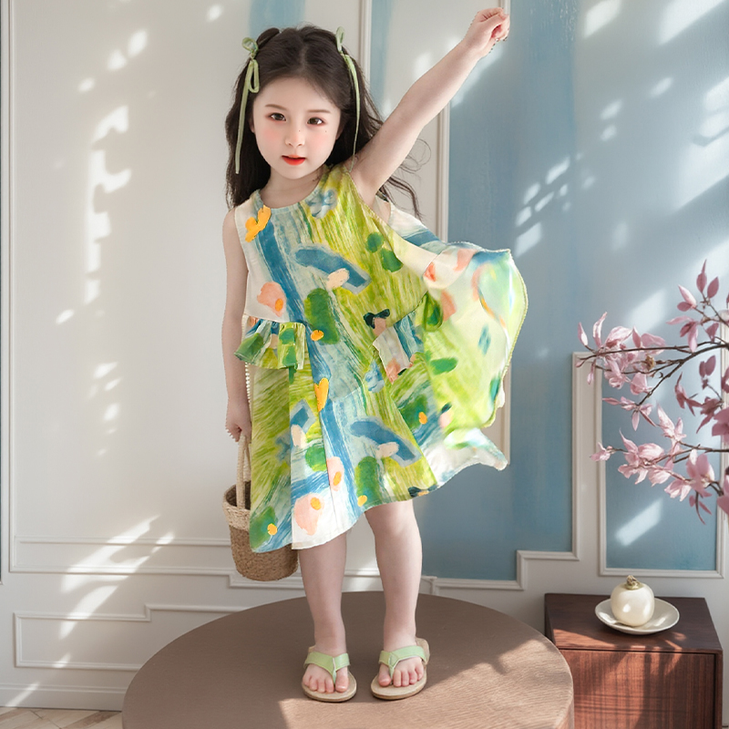 女小童夏季2025新款儿童洋气无袖棉布连衣裙夏装女宝宝时尚公主裙