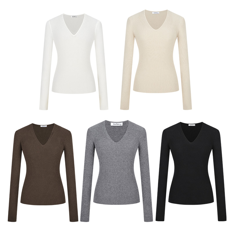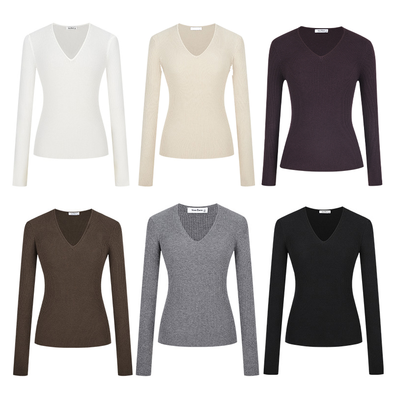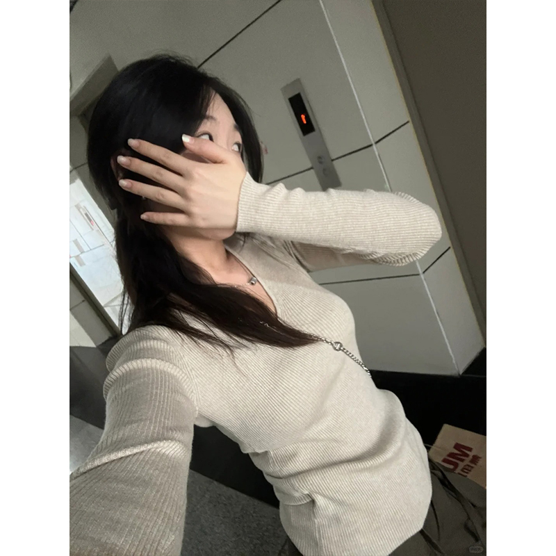 MosesQueen魔西女王奶茶色V领针织衫修身显瘦百搭气质长袖上衣