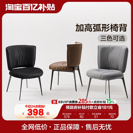 全友家居2025新款意式轻奢高级感软包餐椅客厅书房休闲带靠背椅子