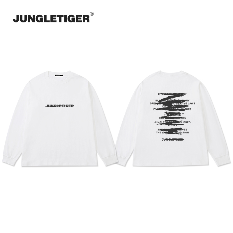丛林老虎高街涂鸦长袖T恤男春秋美式潮牌oversize宽松纯棉打底衫
