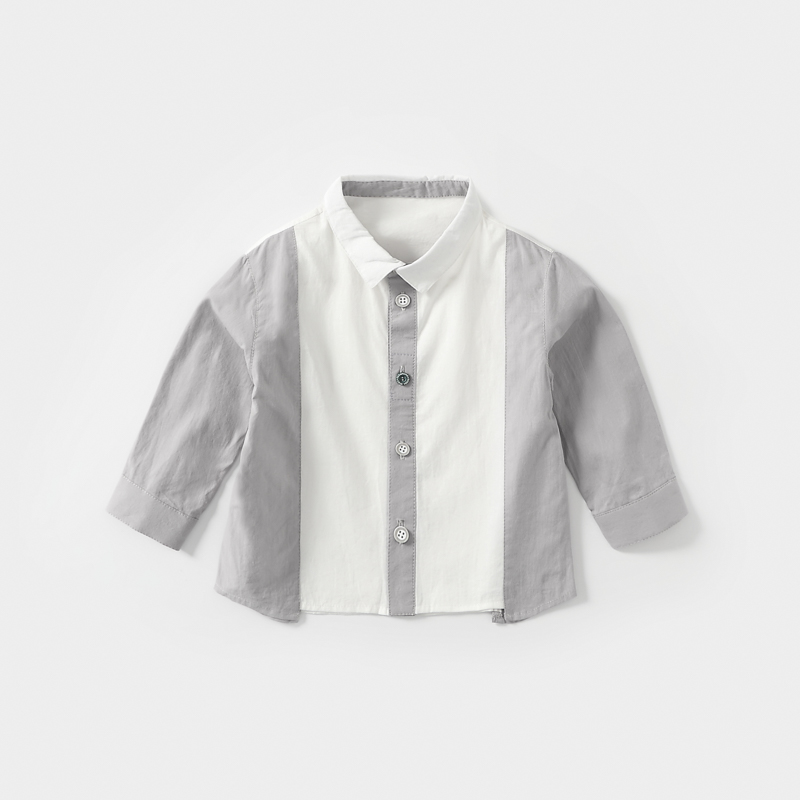 cutebunny男童长袖衬衫春季新款婴儿帅气撞色衬衣中小童纯棉上衣