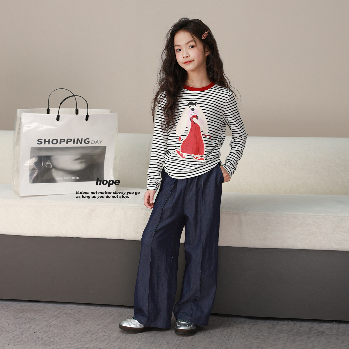 NORNOR陈大猪童装女童牛仔裤2025秋装新款宽松休闲阔腿裤儿童长裤