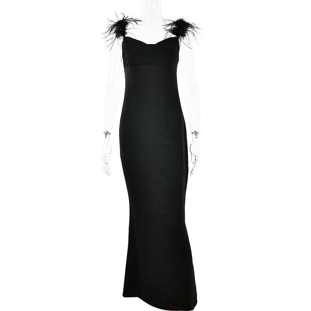 新款 欧美风2025夏季吊带荡领连衣裙女性感辣妹露背高腰紧身长裙