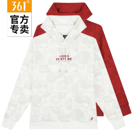 361度男士运动卫衣连帽新品2025春秋印花简约百搭套头衫55Z519807