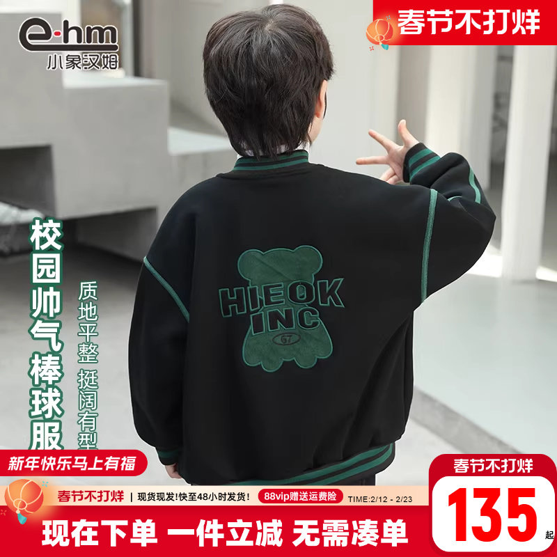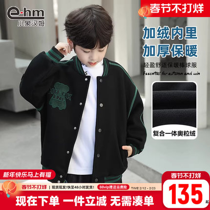 小象汉姆童装男童棒球服加绒儿童外套一体绒冬新款2026韩版上衣
