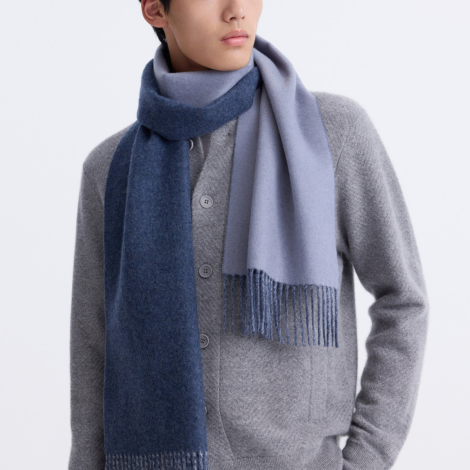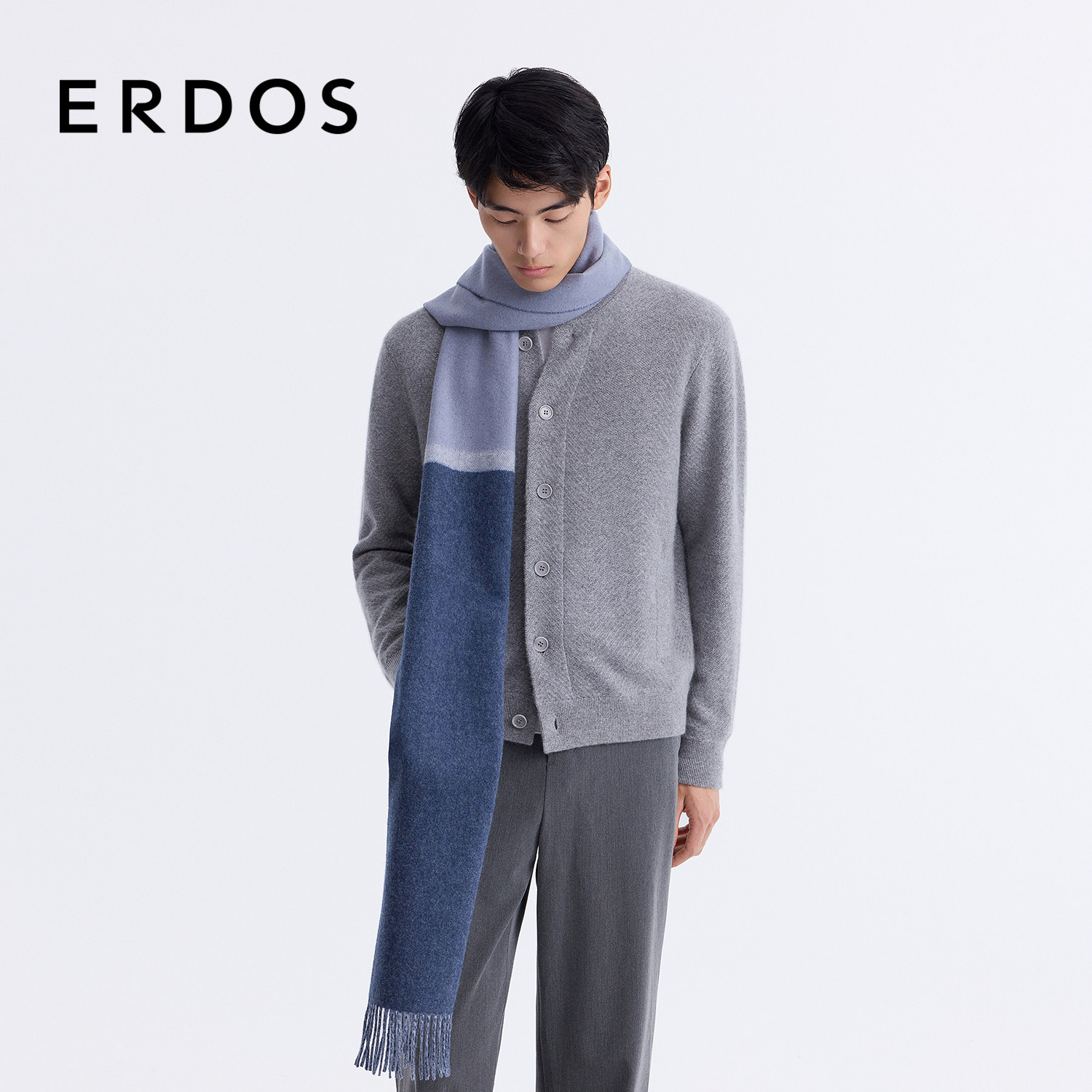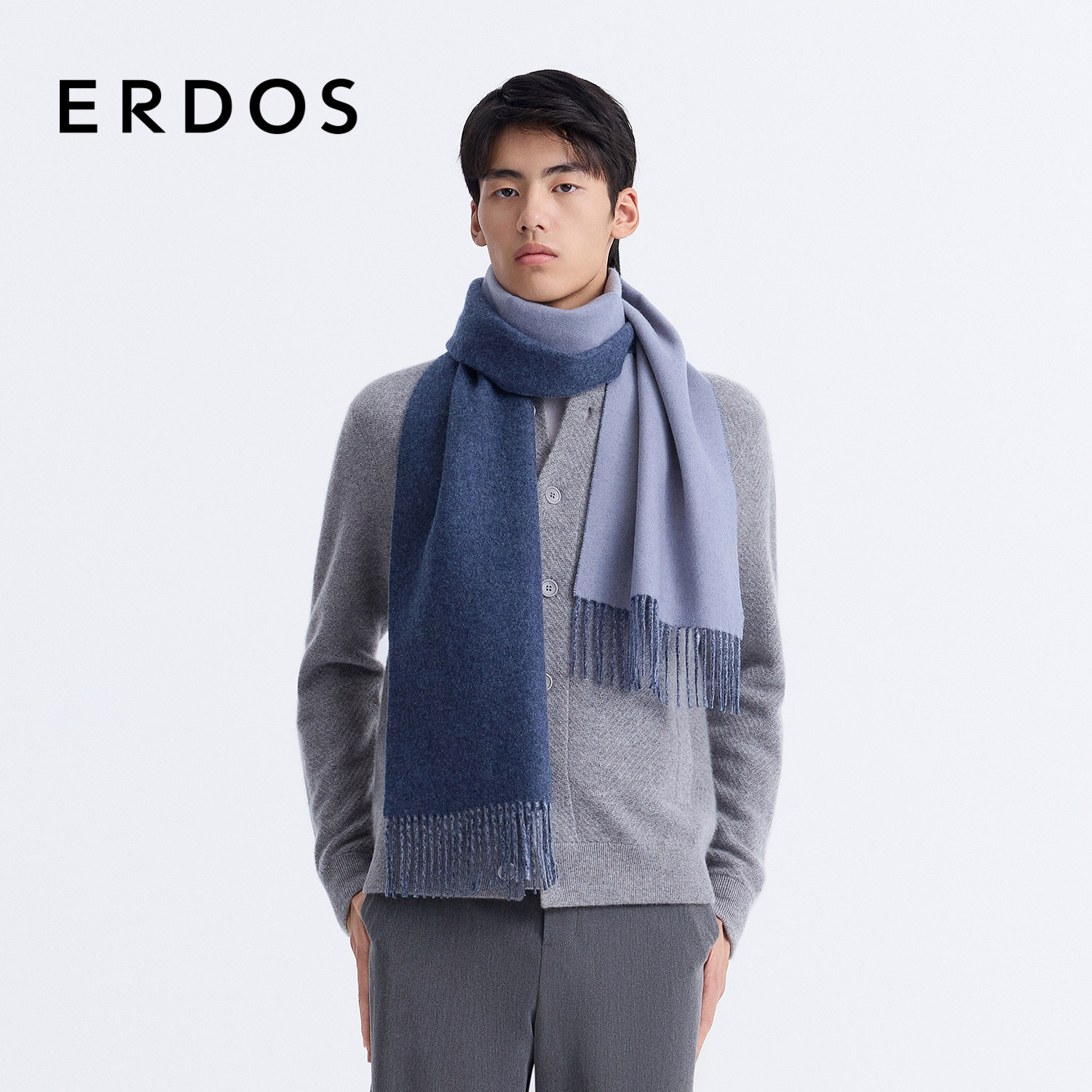 【羊绒围巾】ERDOS 男装25年春新款双层起毛提花工艺拼色百搭围巾