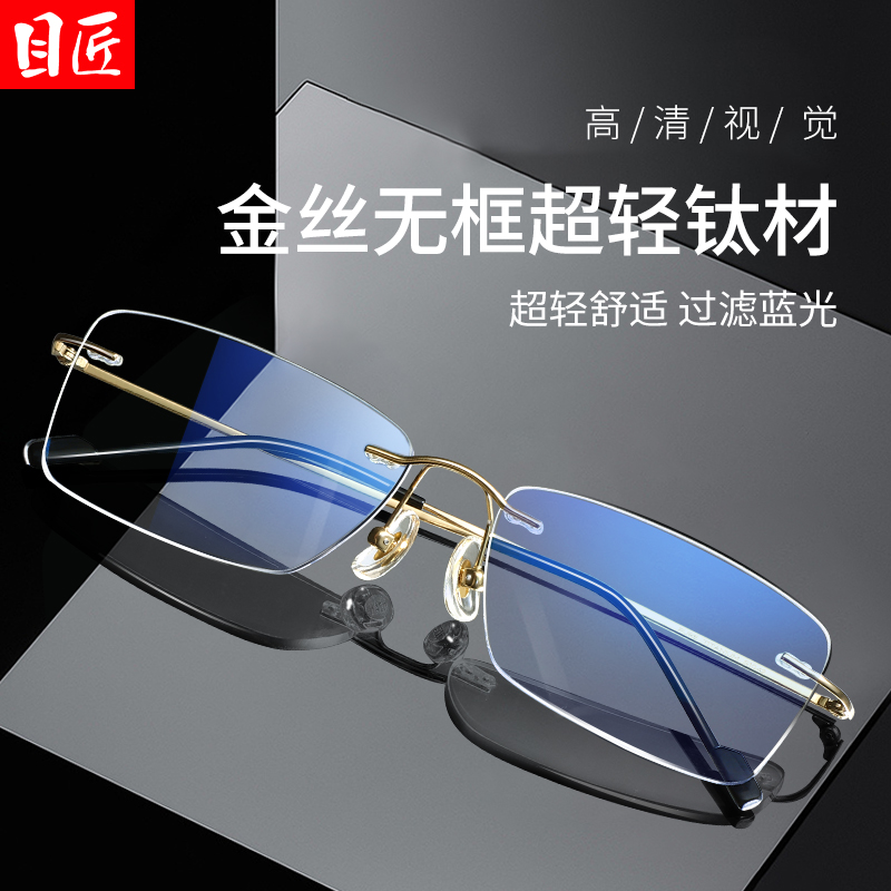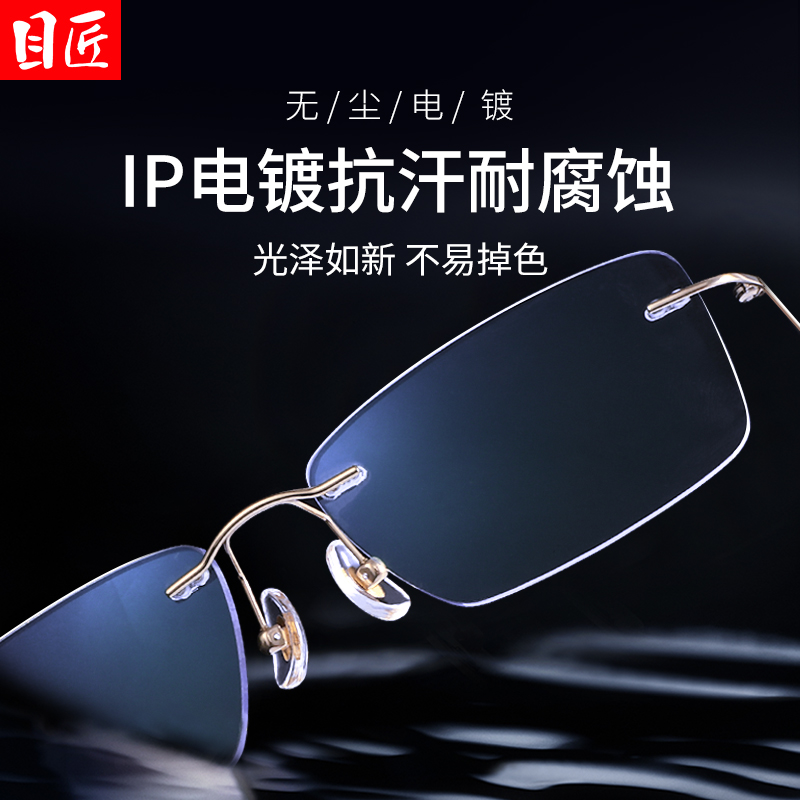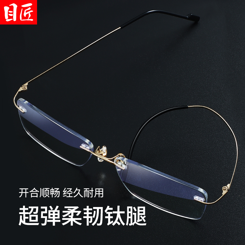 超轻纯钛商务金丝无框近视眼镜男