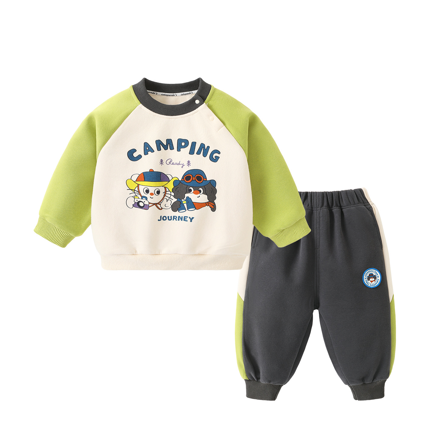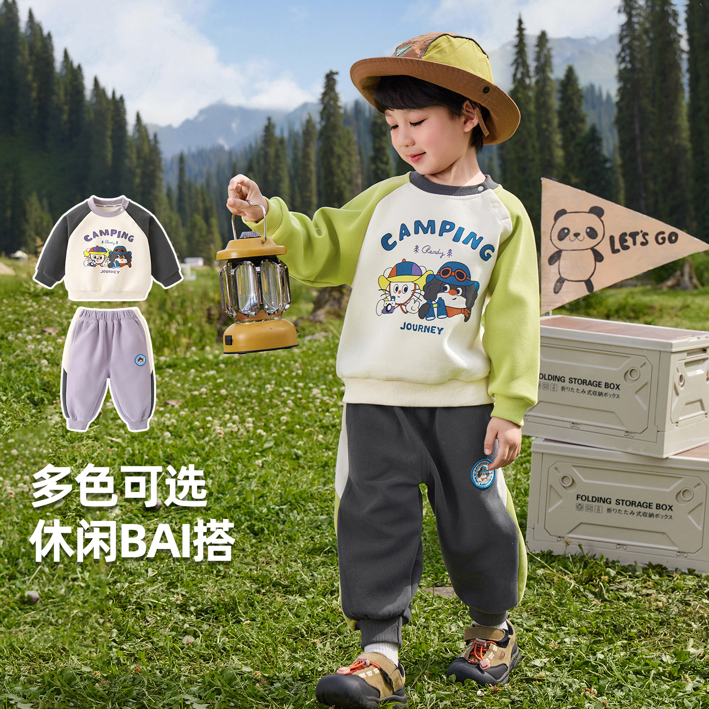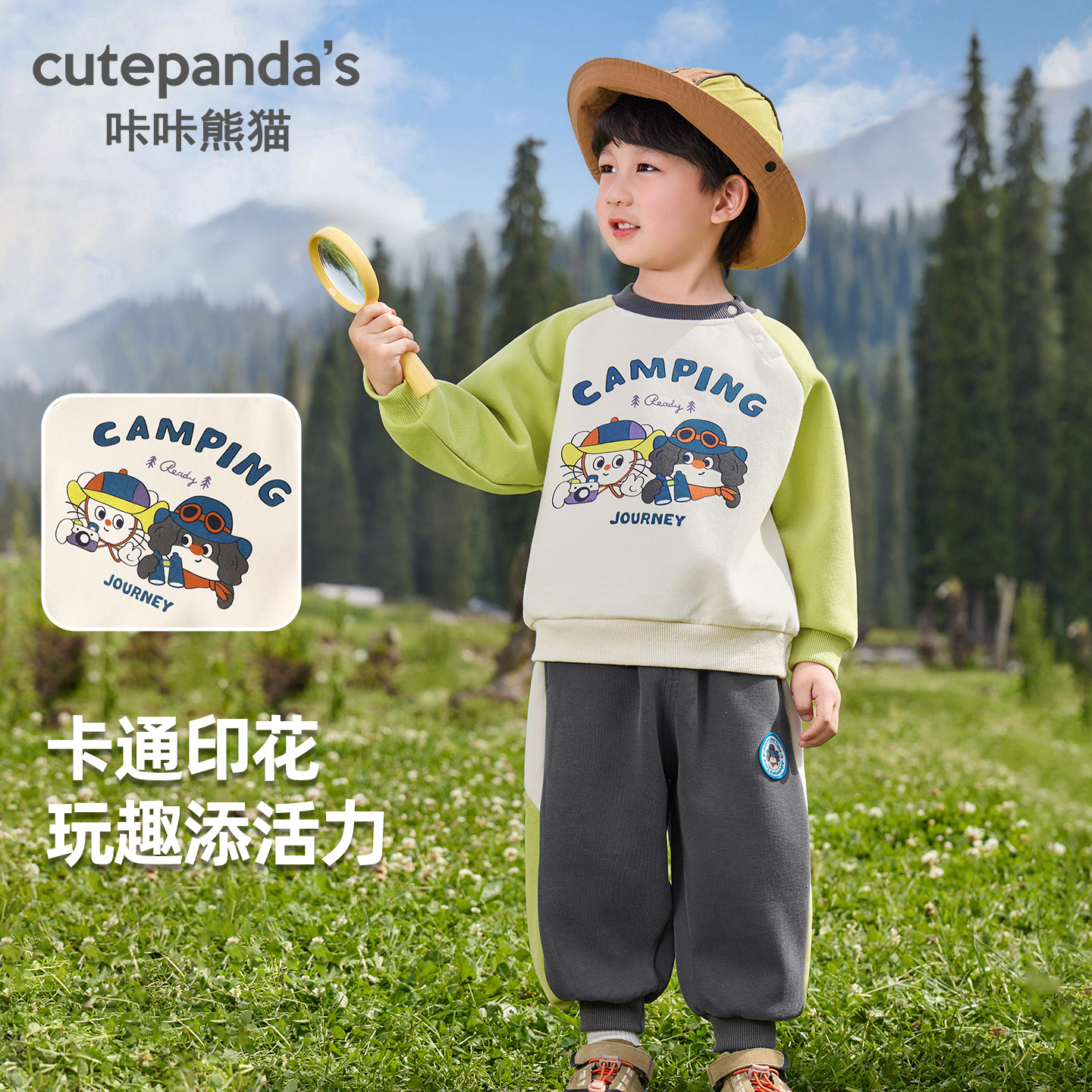 咔咔熊猫儿童套装男童秋装女童秋季休闲卫衣长裤两件套宝宝童装潮