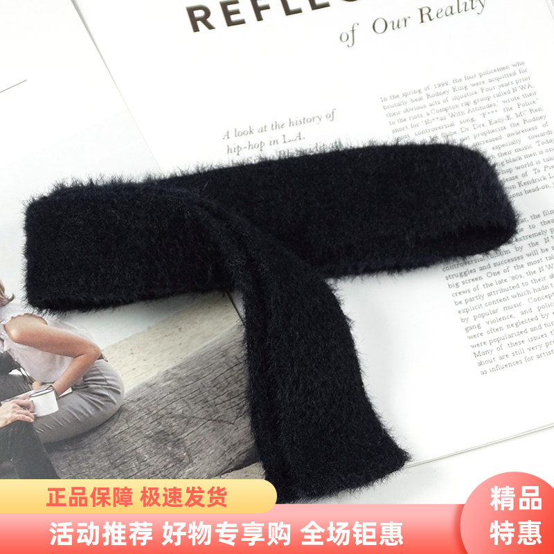 宽版腰带仿水貂绒双面纯色蝴蝶结