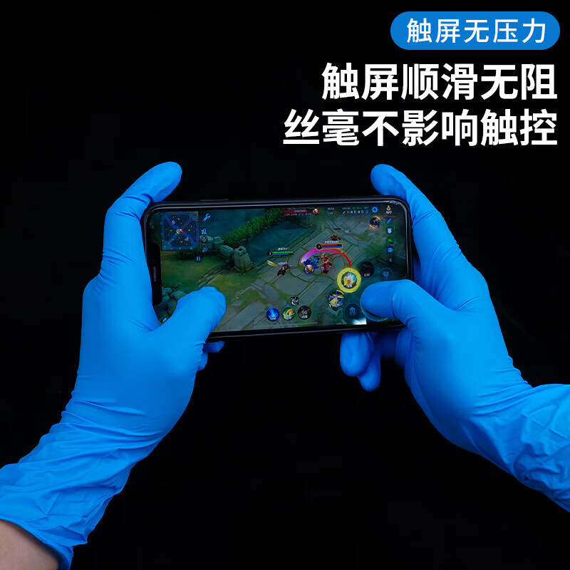 英科医疗一次性手套蓝色丁腈乳胶加厚耐用食品级丁睛橡胶厨房医用