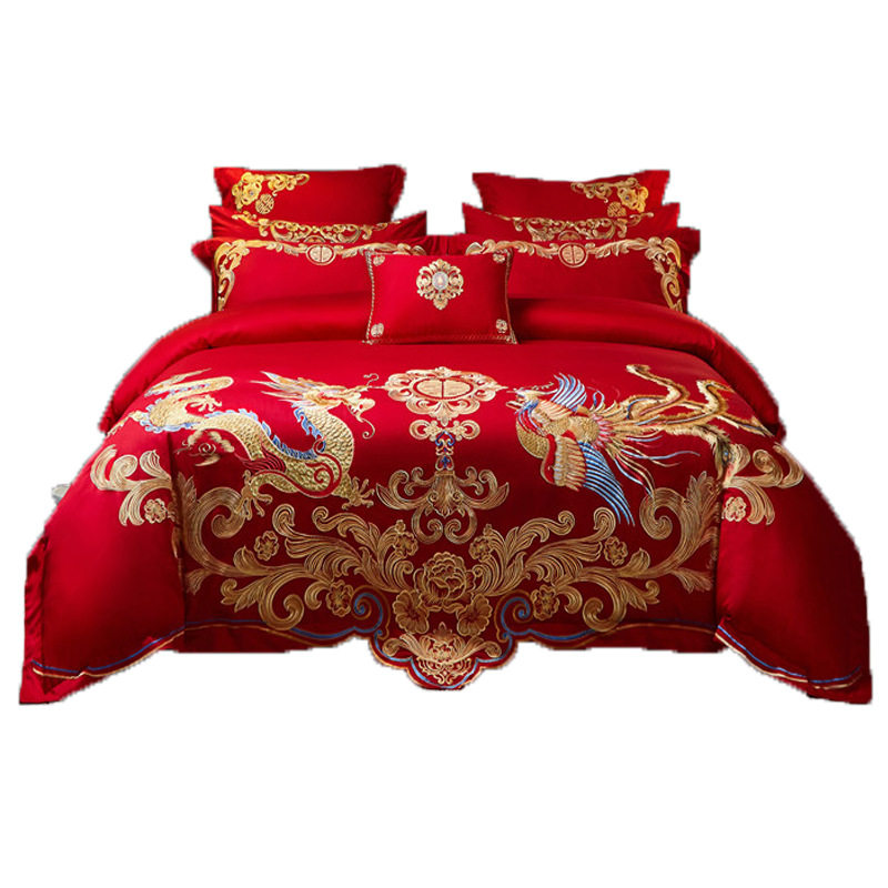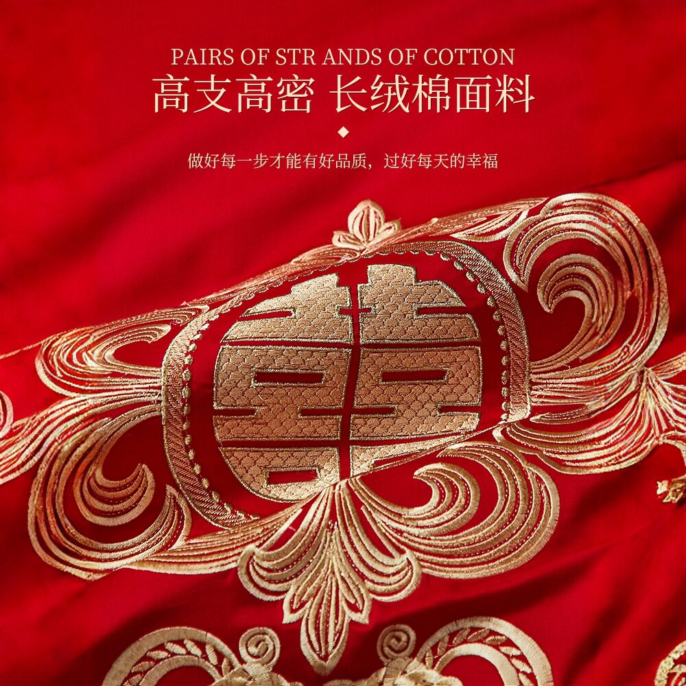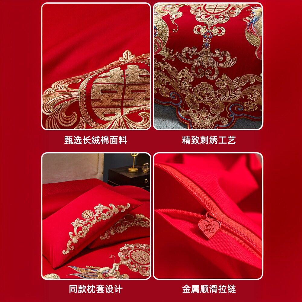 长绒棉婚庆四件套纯棉结婚被套罩全棉床单大红色高档新婚床品