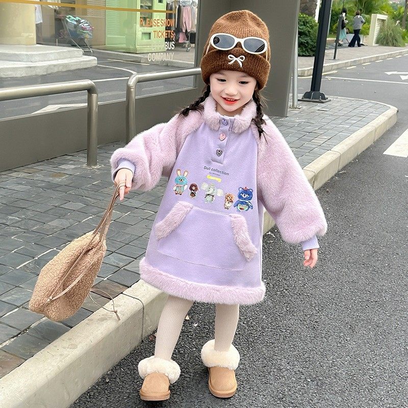 女童加绒连衣裙秋冬2025新款儿童加厚公主裙可爱宝宝冬季卫衣裙子