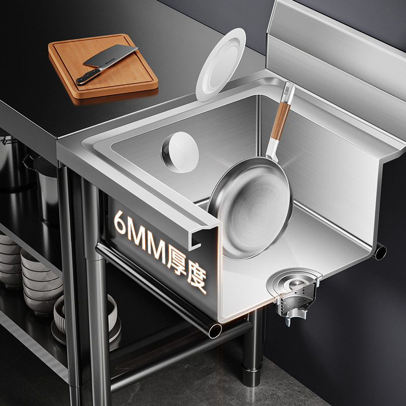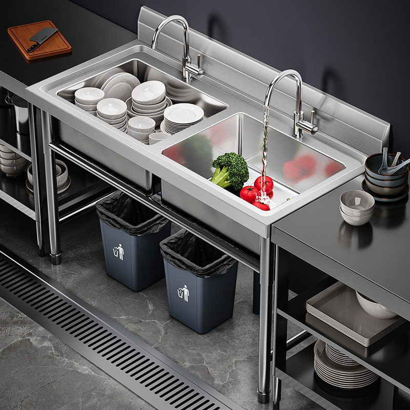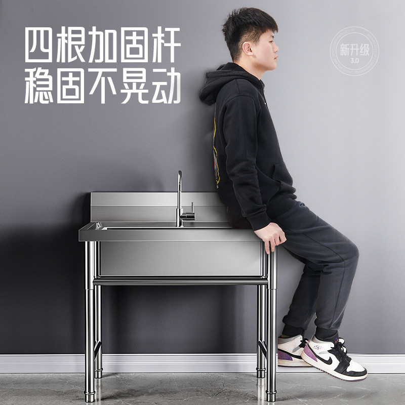 商用不锈钢水槽手工单双三槽厨房洗菜盆洗手盆洗碗水池带支架家用