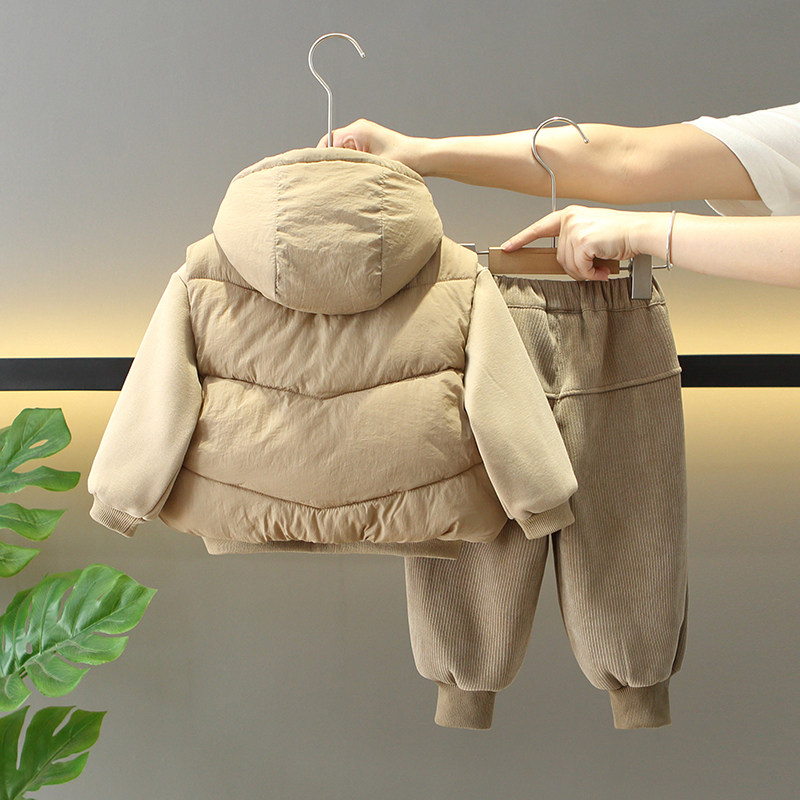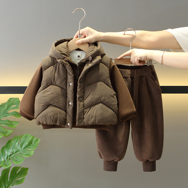 男童冬季加绒加厚套装2025新款儿童洋气冬装宝宝韩版马甲三件套潮
