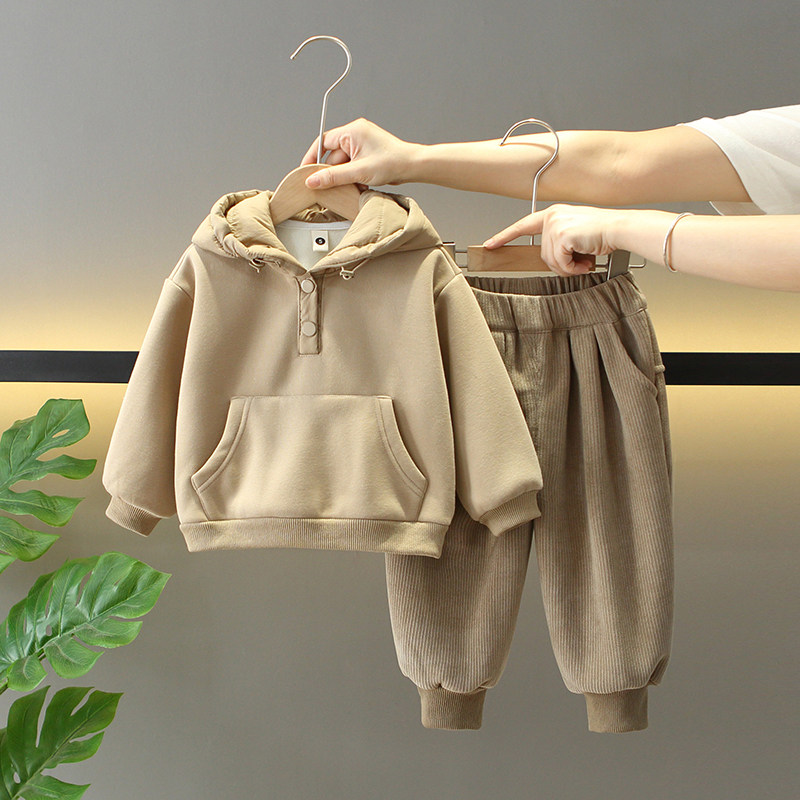 男童冬季韩版洋气加绒加厚三件套