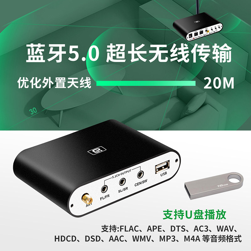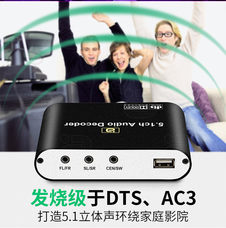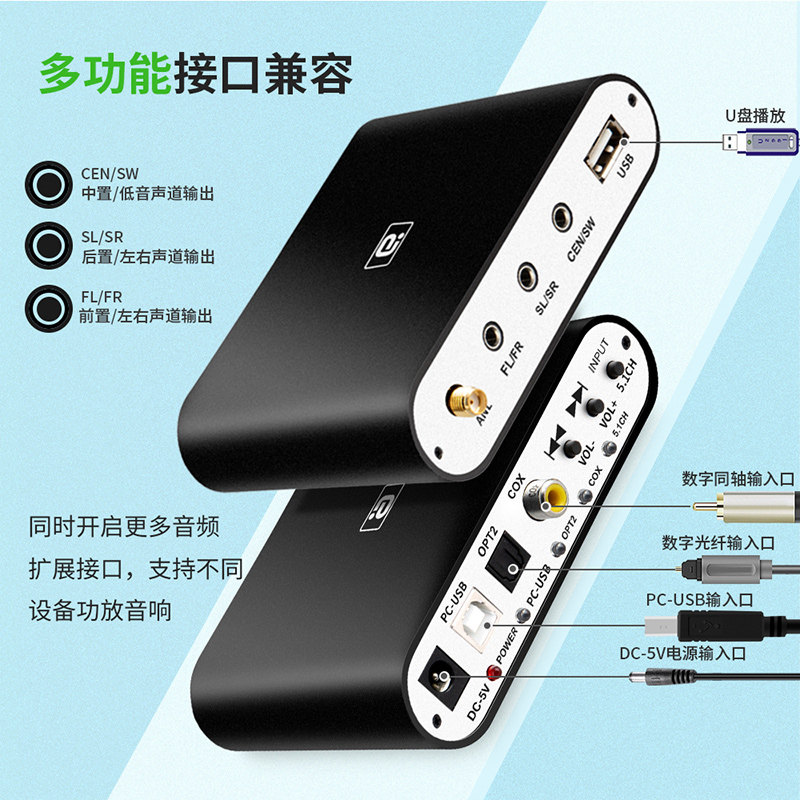 阿音5.1音频解码器DTS蓝牙5.0dac接收U盘光纤同轴HDMI电脑声卡ARC
