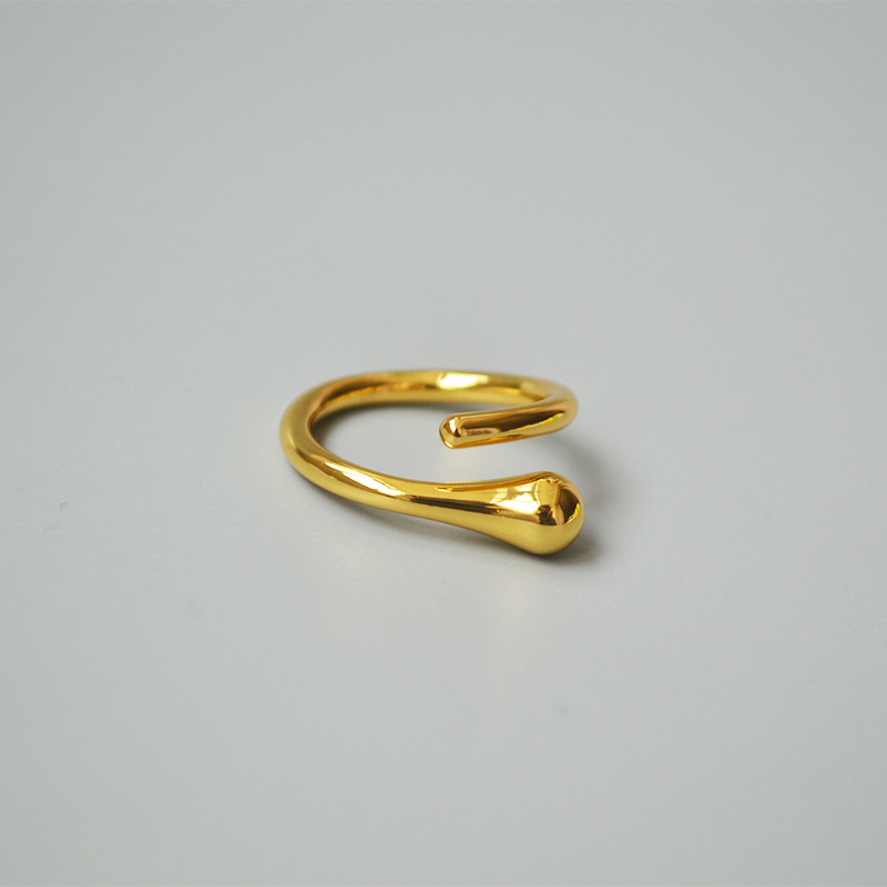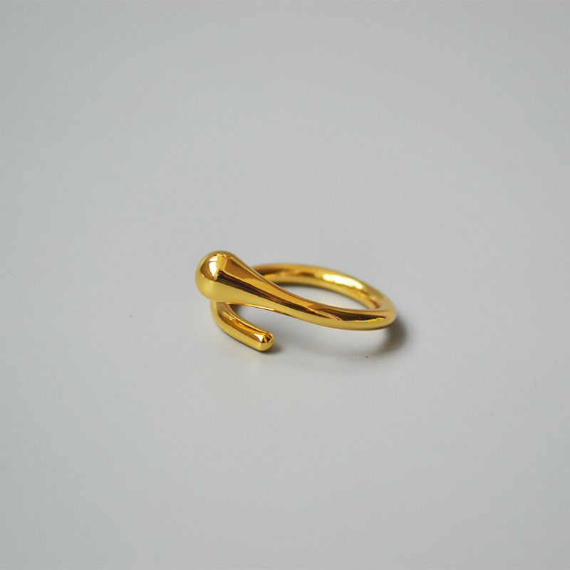 欧美时尚镀18K金原创个性简约冷淡风设计感水滴开口戒指食指戒女