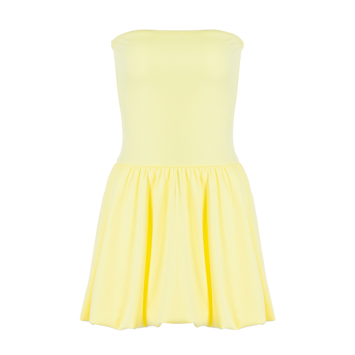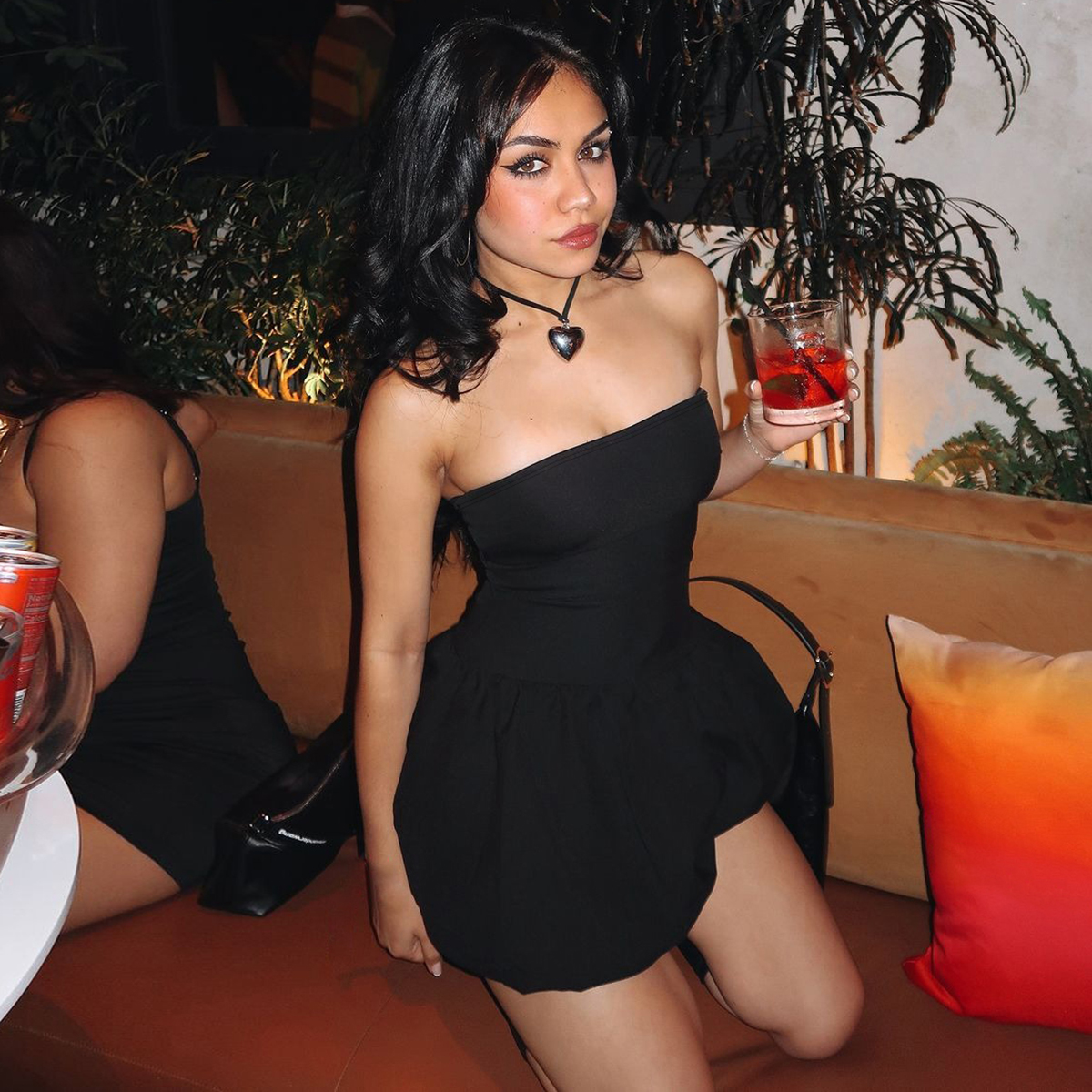 欧美风拼接高腰纯色抹胸蓬蓬裙