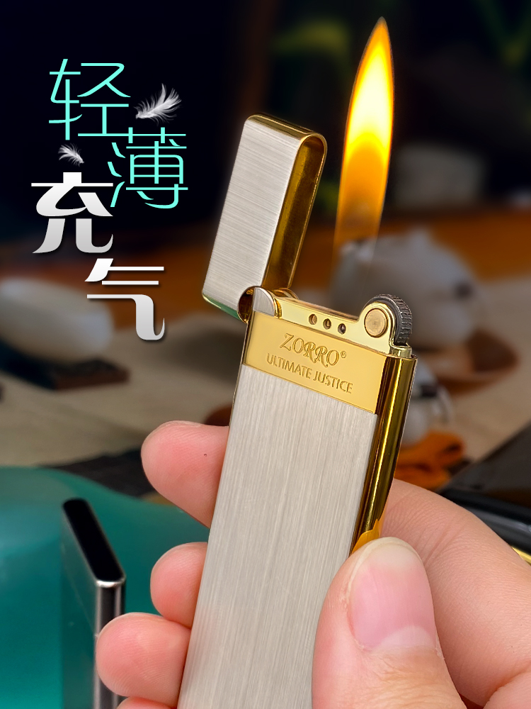 佐罗充气打火机创意砂轮式火机定制刻字送男友个性超薄防风打火机