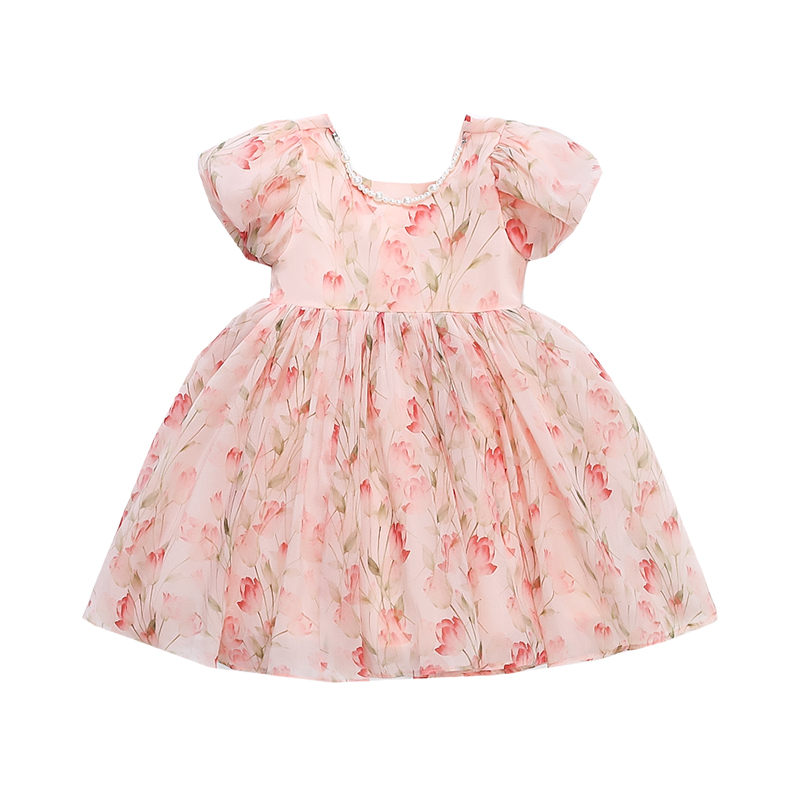 女童连衣裙夏装洋气女孩碎花裙儿童超仙泡泡袖公主裙粉色甜美裙子