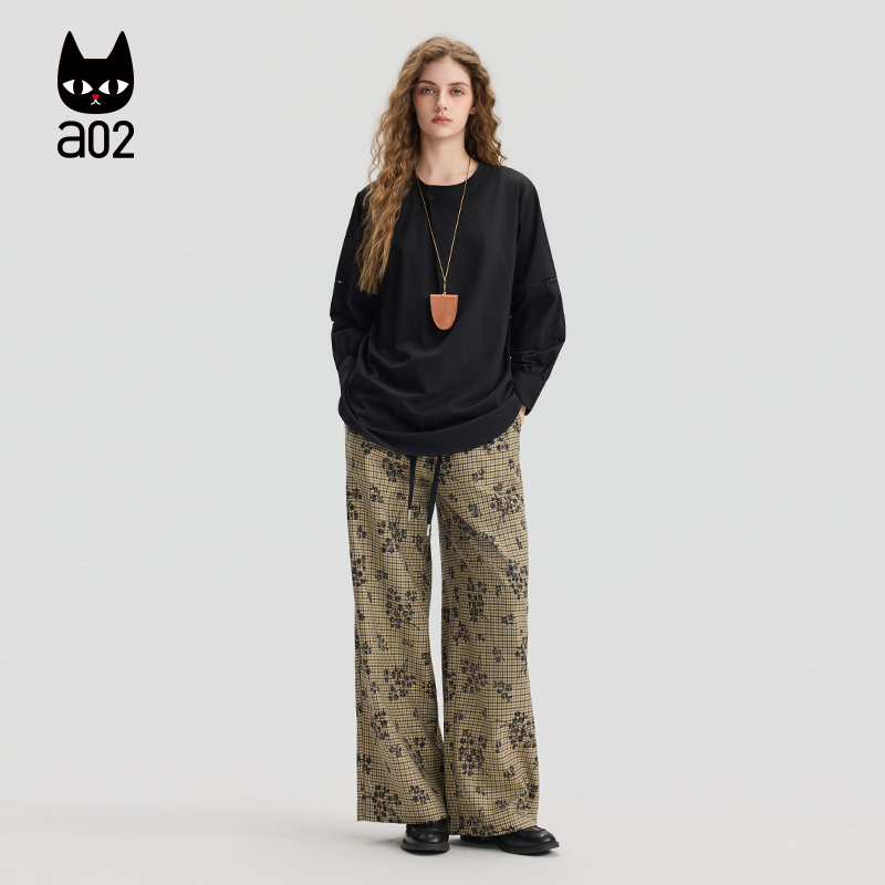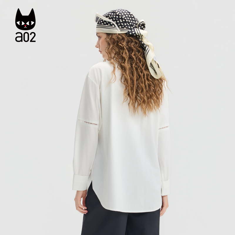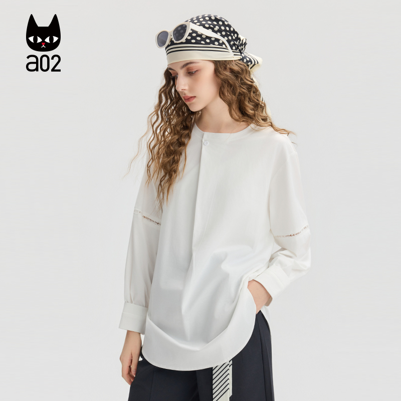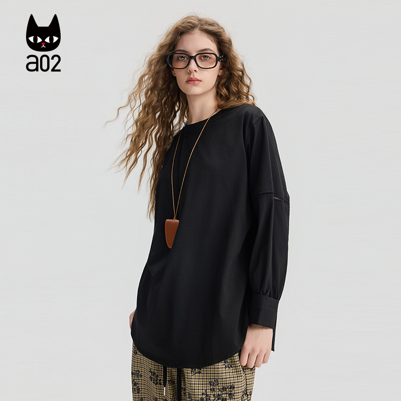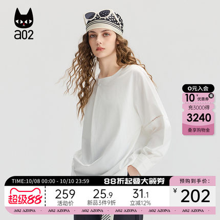 a02宽松白色长袖T恤女2025新款秋季百搭通勤打底衫上衣圆领套头衫