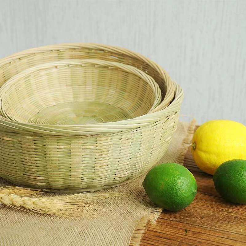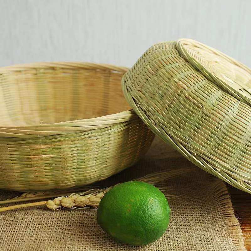 馒头馍竹编制品筐筲簸箕农家用手工圆收纳沥水篮竹篓筐有无孔筛子