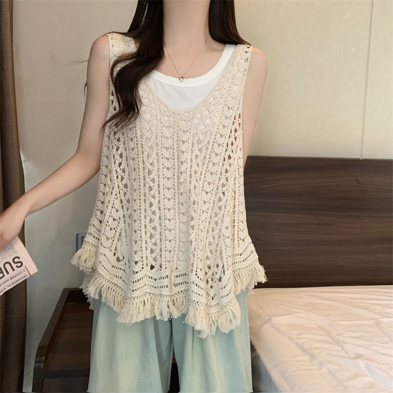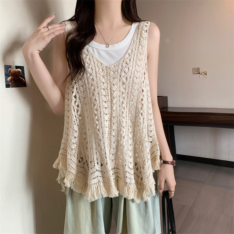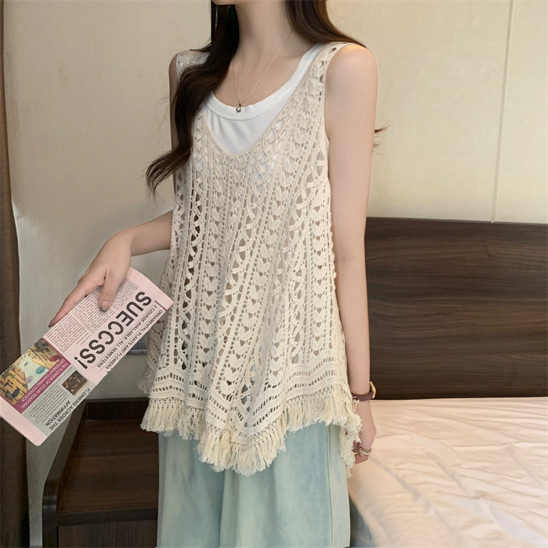 夏季美拉德罩衫搭配裙子叠穿镂空吊带背心海边旅游度假超好看上衣