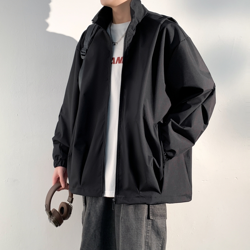 WASSUP潮牌纯色运动防风春秋季新款立领夹克男休闲工装青少年外套