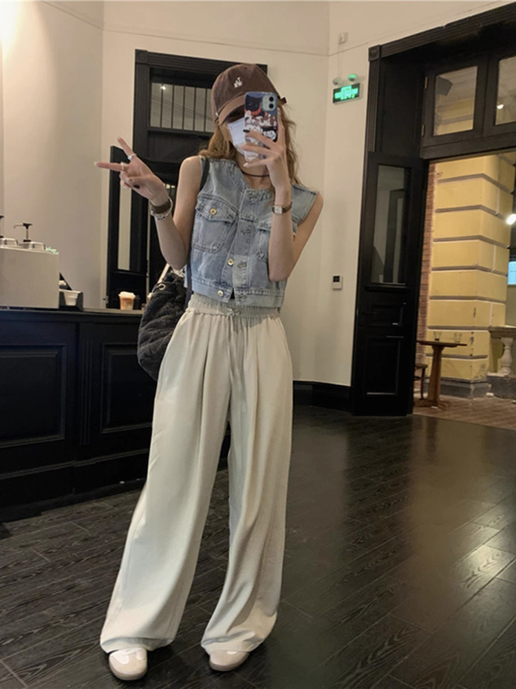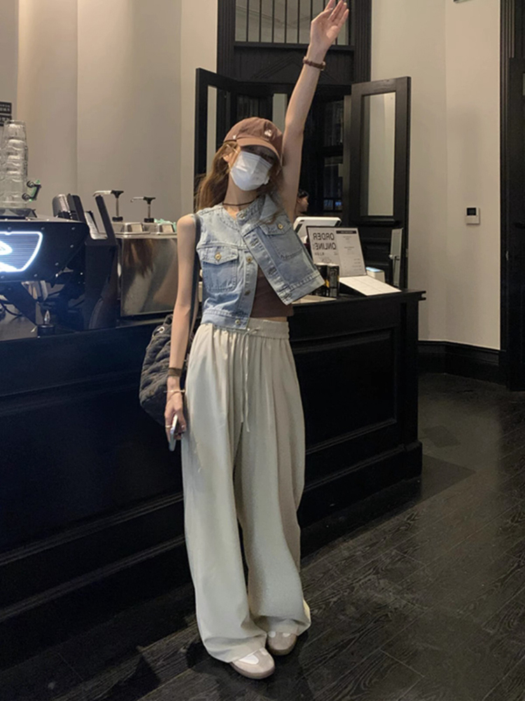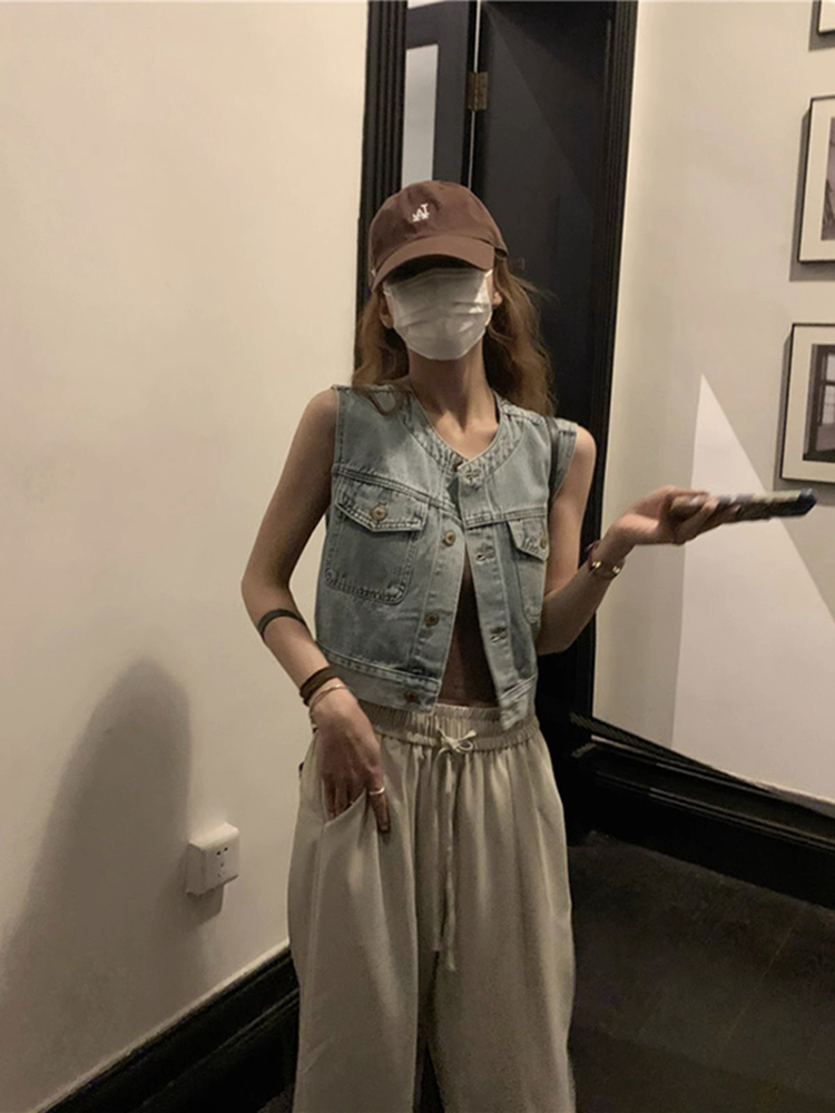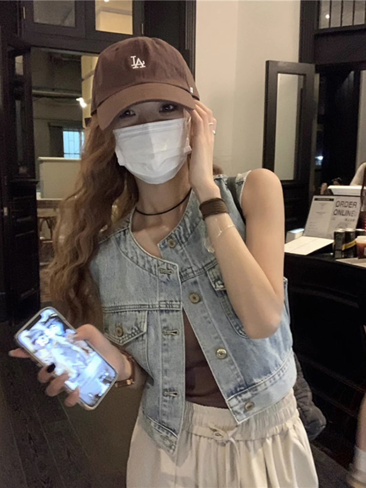 复古做旧牛仔马甲外套女夏季外搭宽松休闲百搭短款无袖坎肩上衣潮